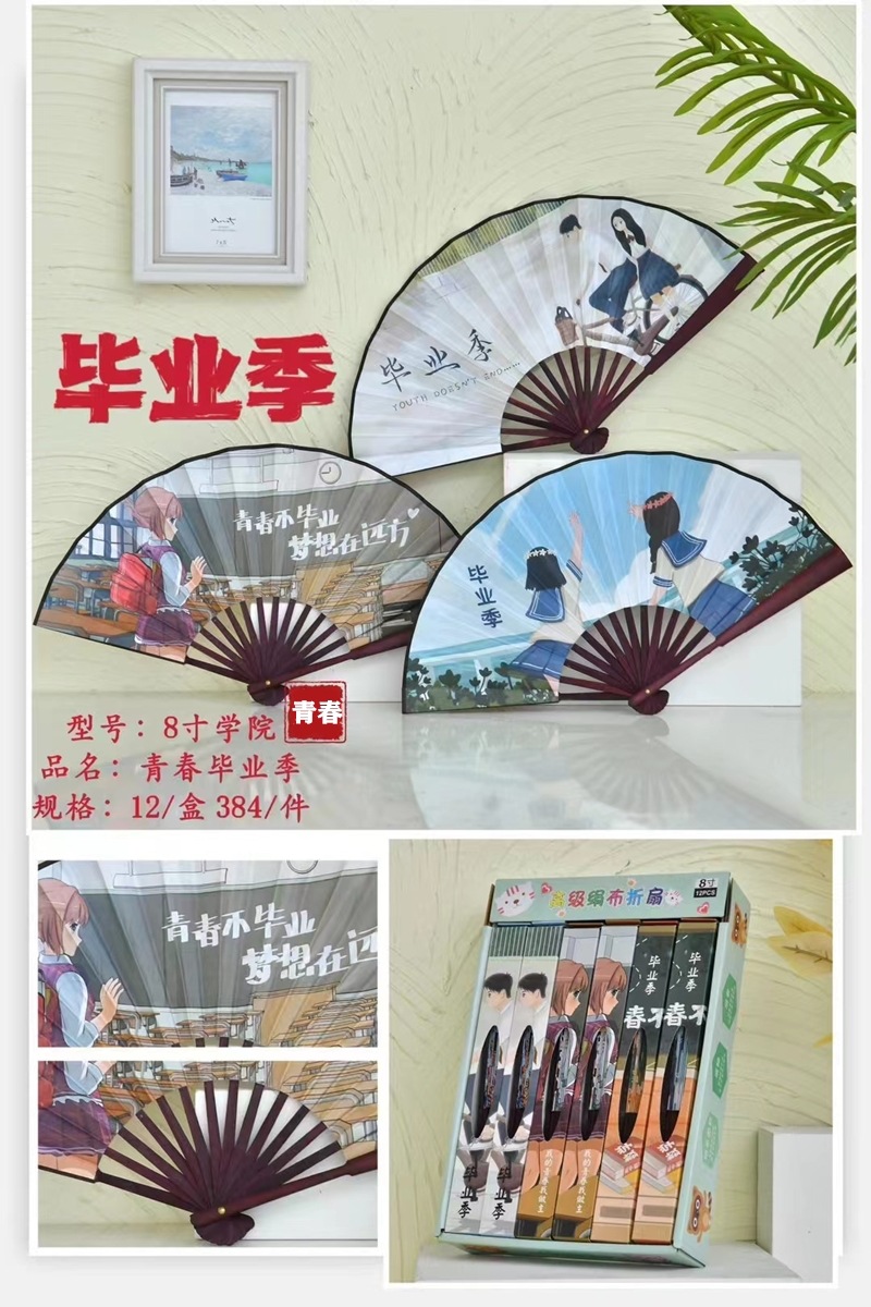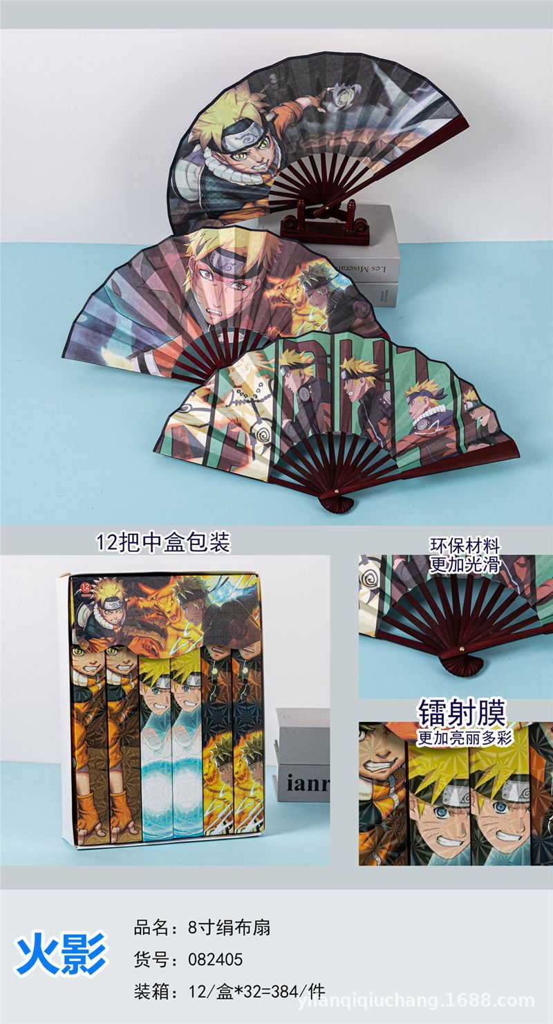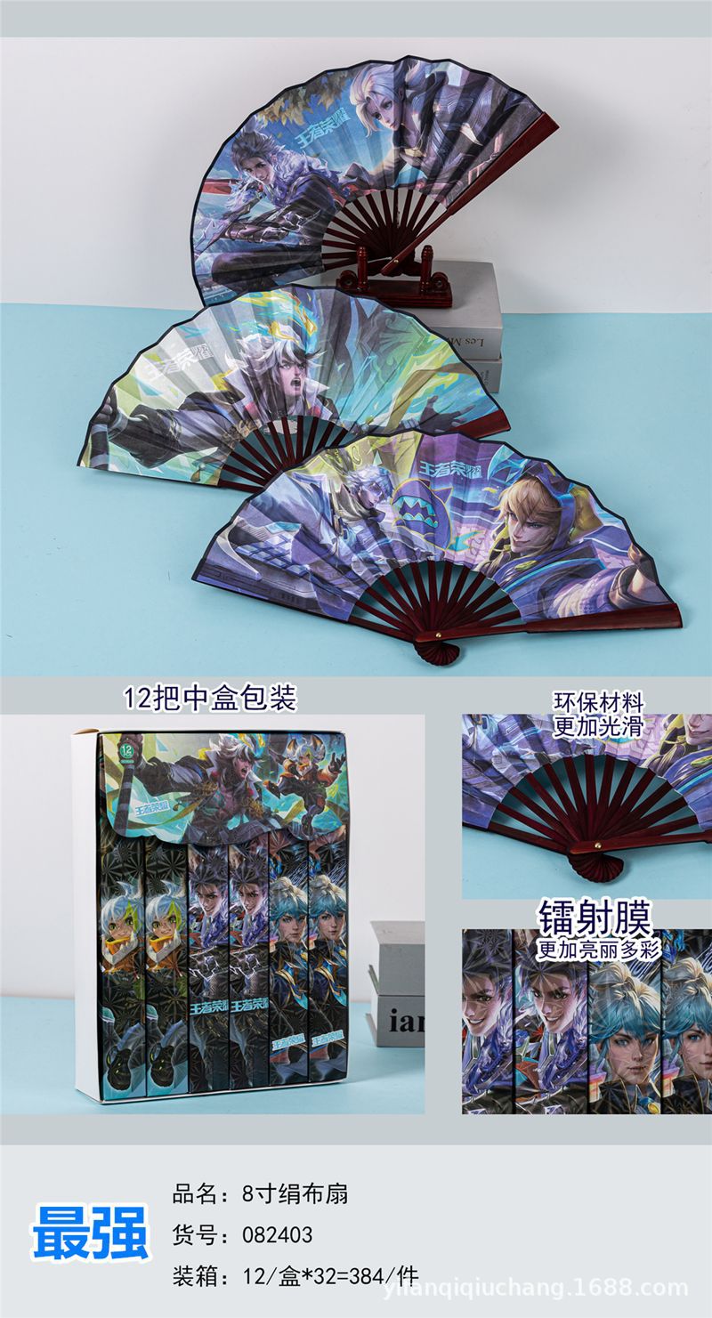 Abanico de tela de seda King Glory de 8 pulgadas Embalaje independiente Nezha El futuro es como un slam dunk Sanrio Anime Cartoon