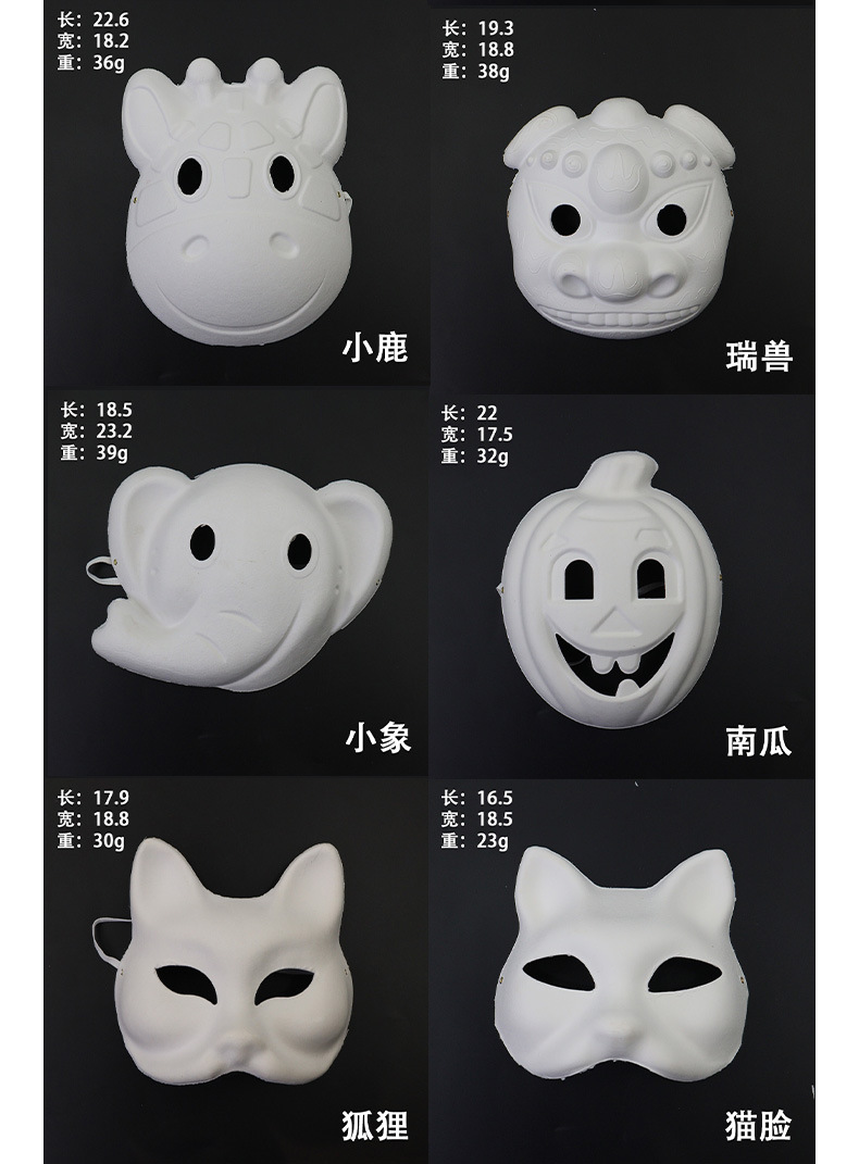 Máscara de cara de gato de fiesta en blanco para hombres y mujeres, pintura de bricolaje, máscara de pulpa, accesorios hechos a mano para niños, máscara de cara completa de graffiti