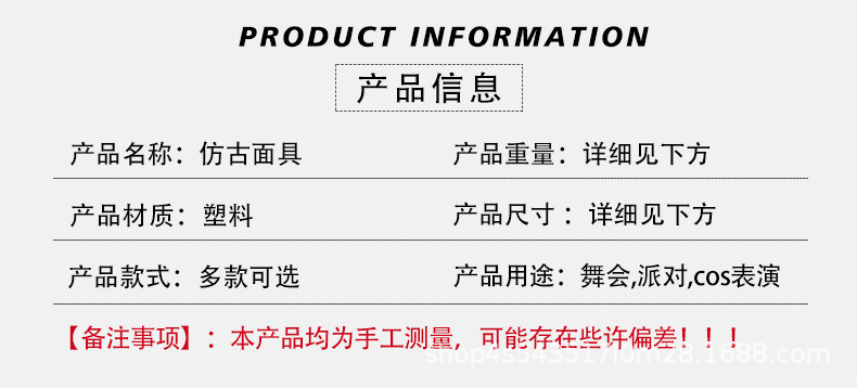 Máscara retro de venta caliente transfronteriza Misteriosa carnaval retro Máscara de Halloween Máscara de media cara Advanced Sense Masquerade Boom Props
