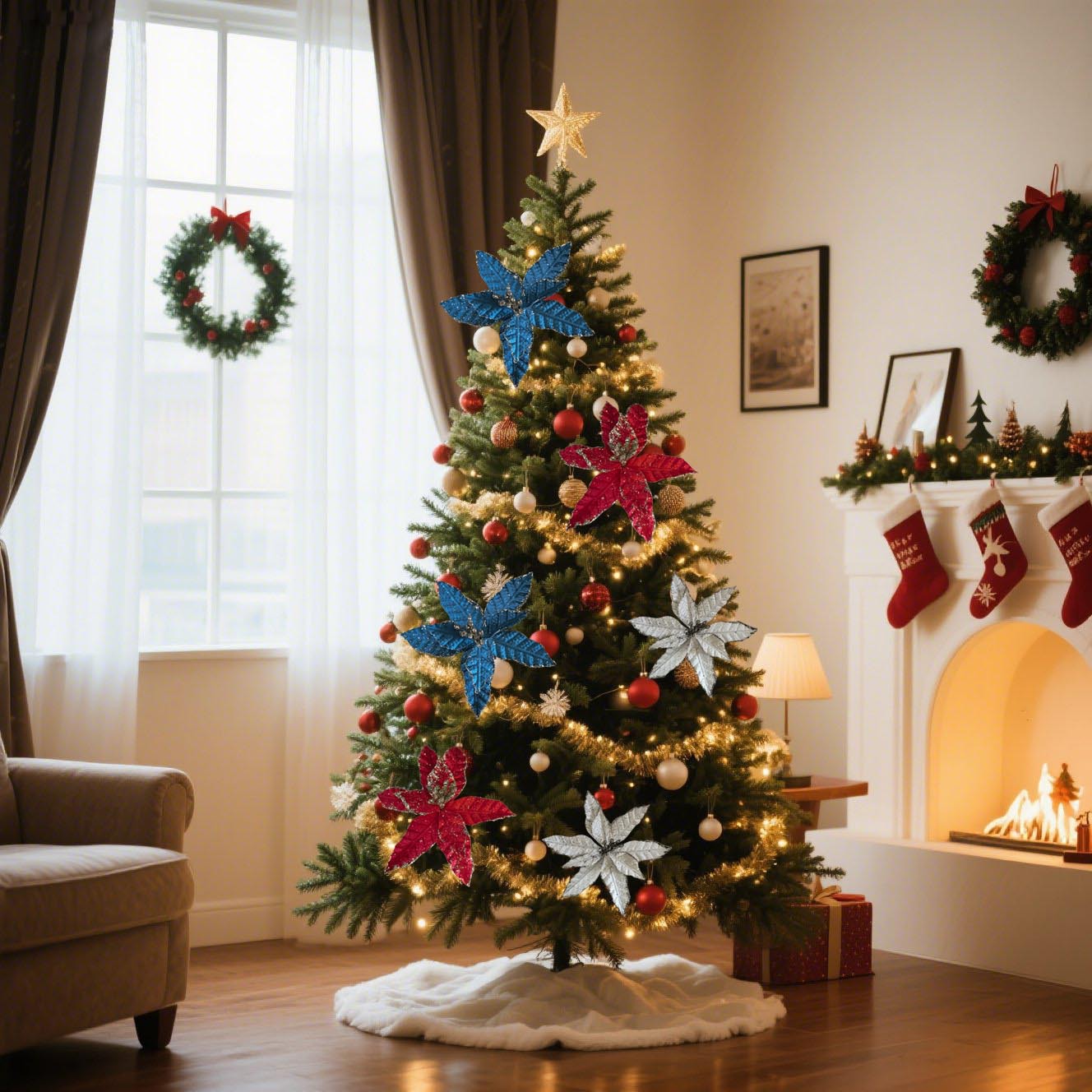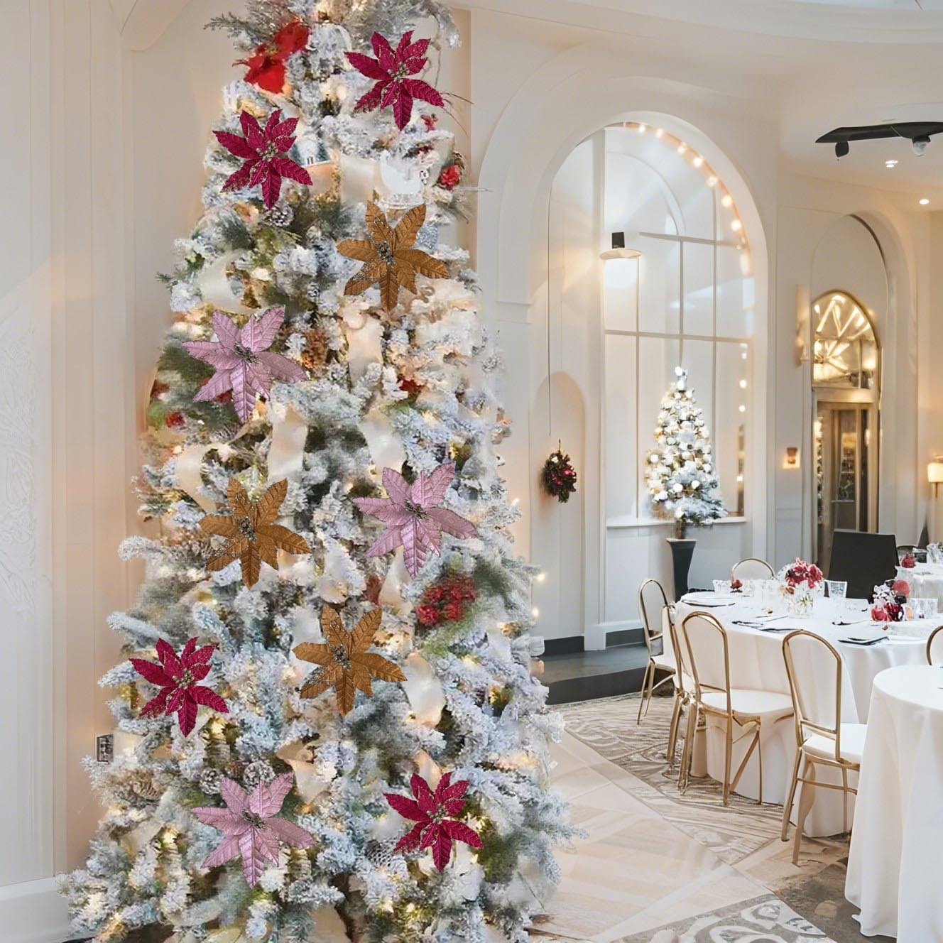 Nuevo polvo de Navidad transfronterizo de simulación flores de Navidad decoración de árbol de Navidad decoración de fiesta decorativa atmósfera del hogar
