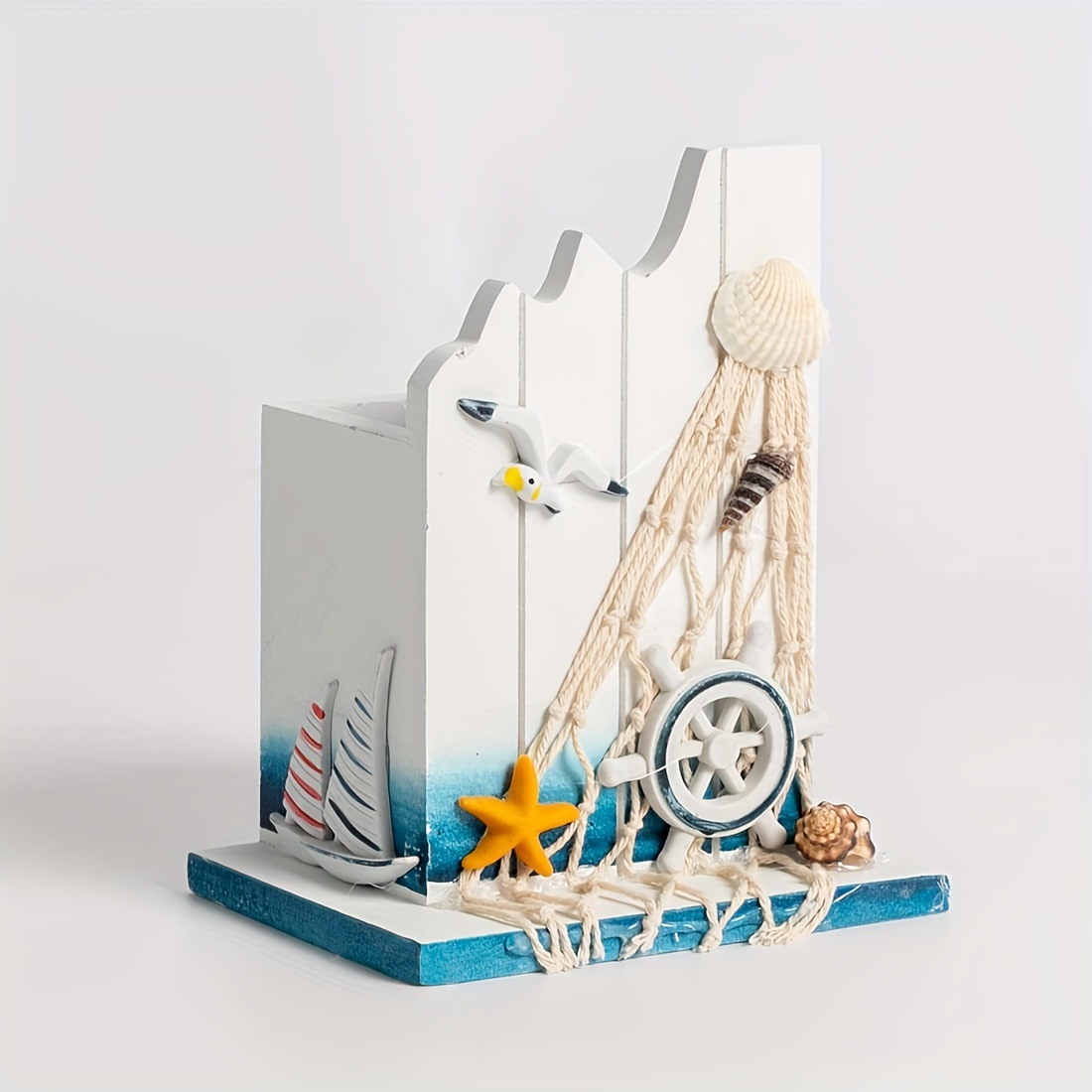 Estilo mediterráneo creativo caja de almacenamiento aleatoria de bolígrafo de estilo marino para el hogar de madera decoración de escritorio de oficina decoración