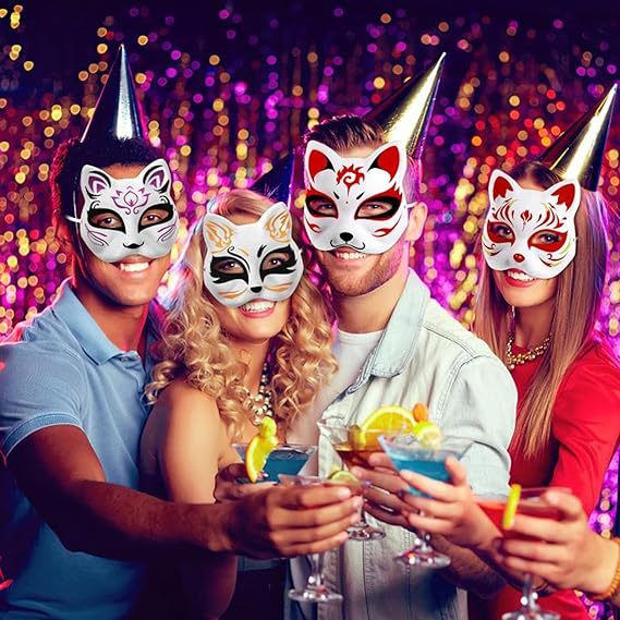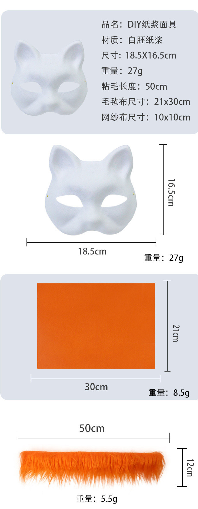 Amazon venta caliente DIY en blanco gato cara máscara Halloween hombres y mujeres pintados a mano máscara de pulpa de graffiti juego de pintura