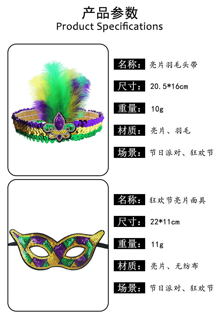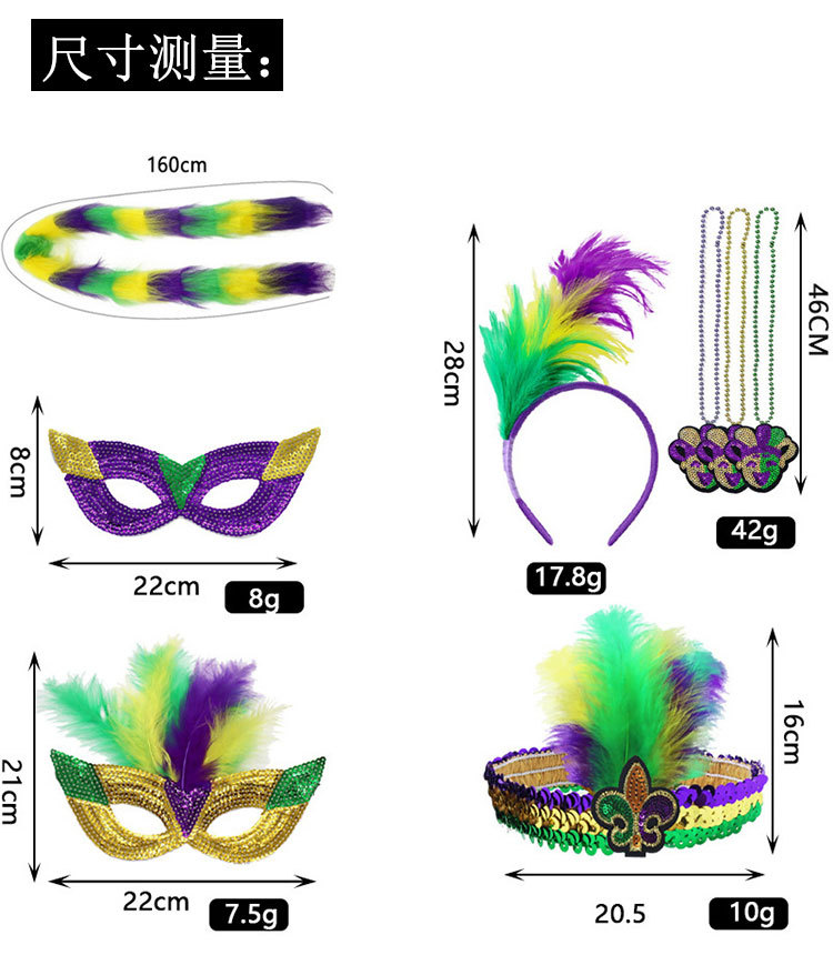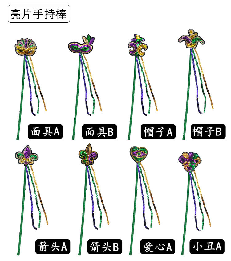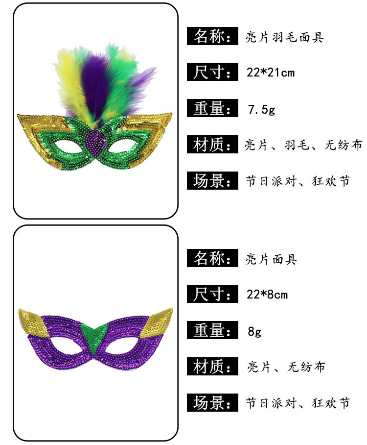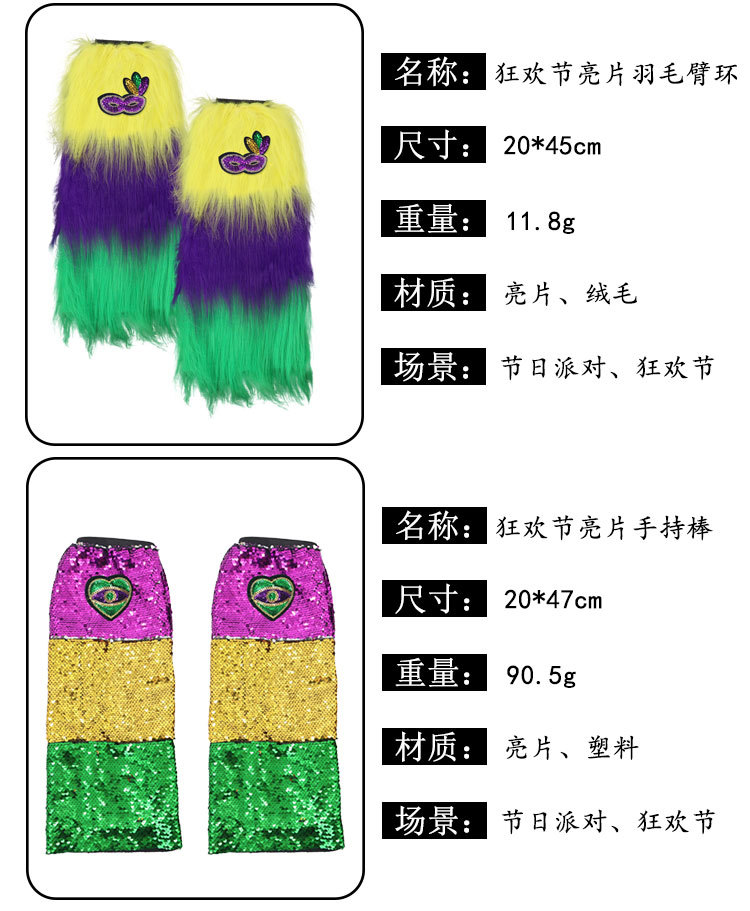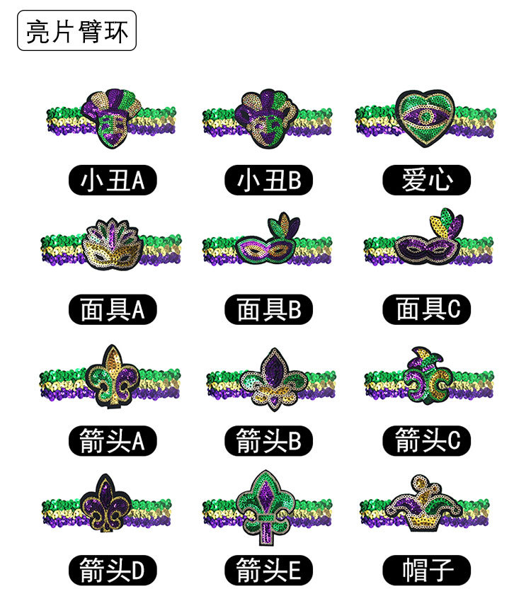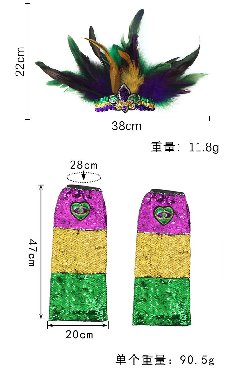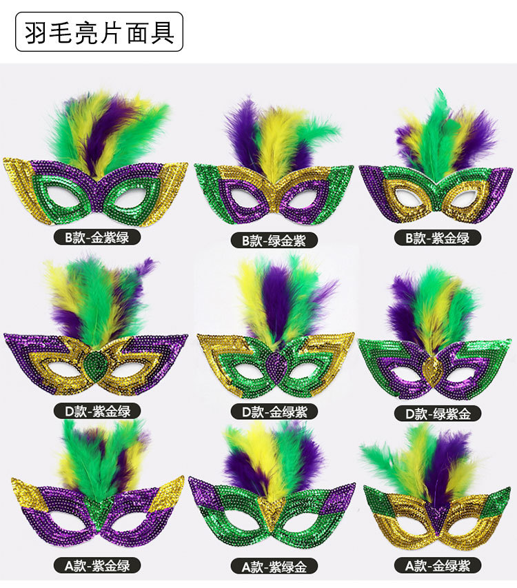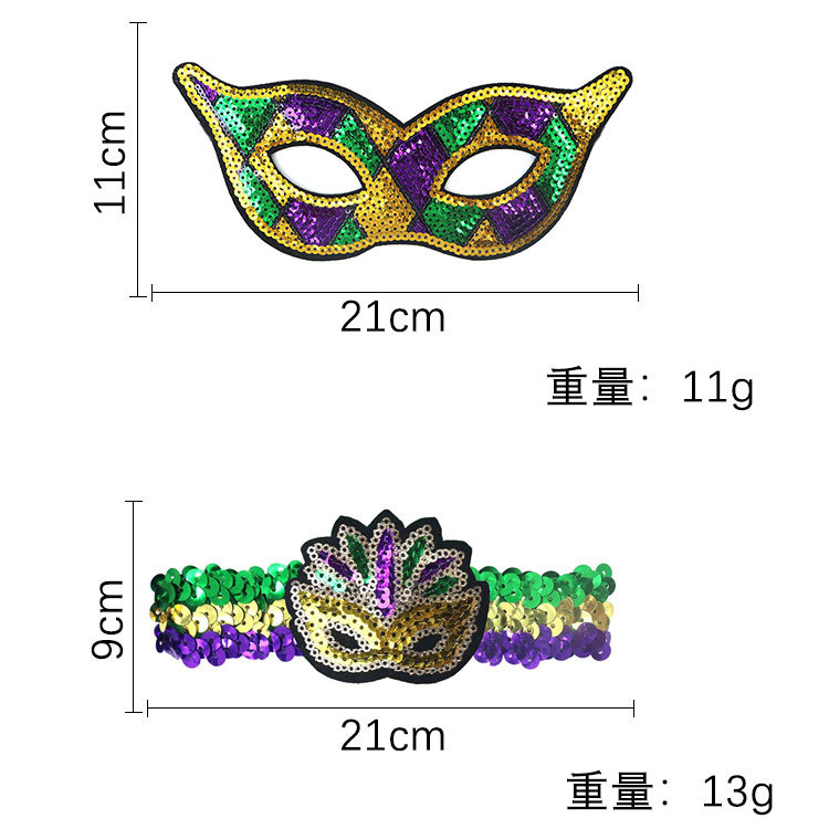 Nuevos productos transfronterizos Mardi Gras set de sequillas oro violeta verde fiesta de baile disfraz de bar espectáculo