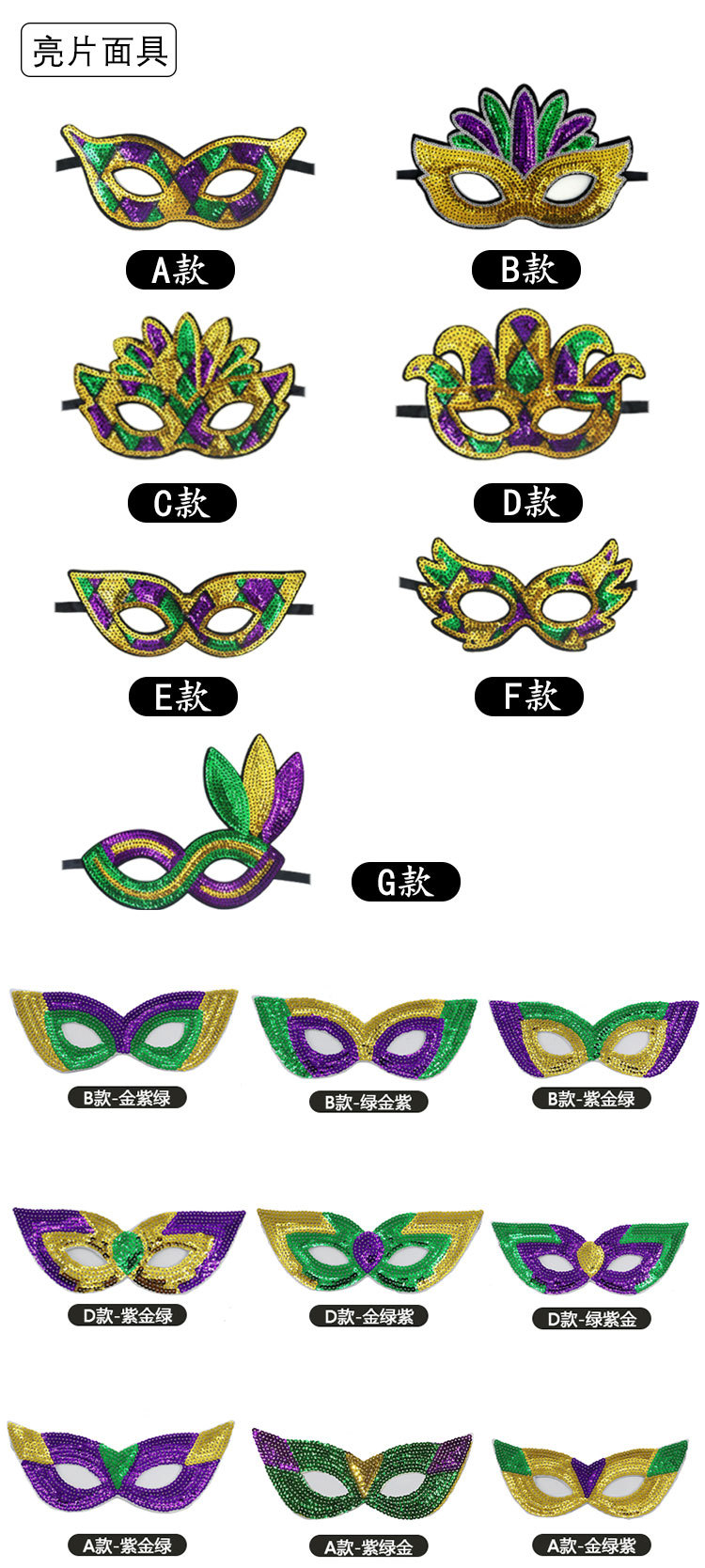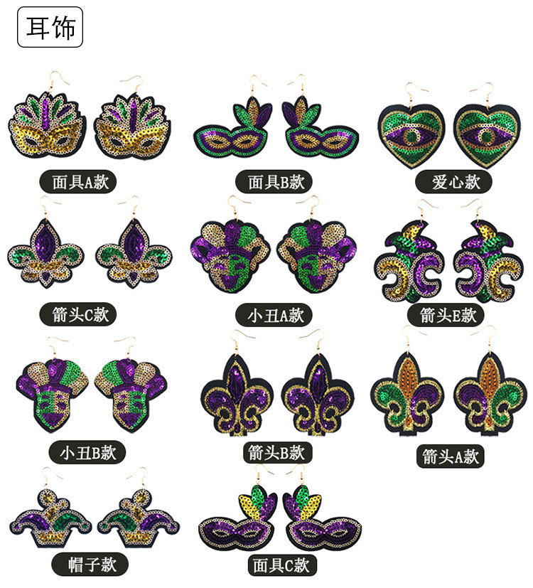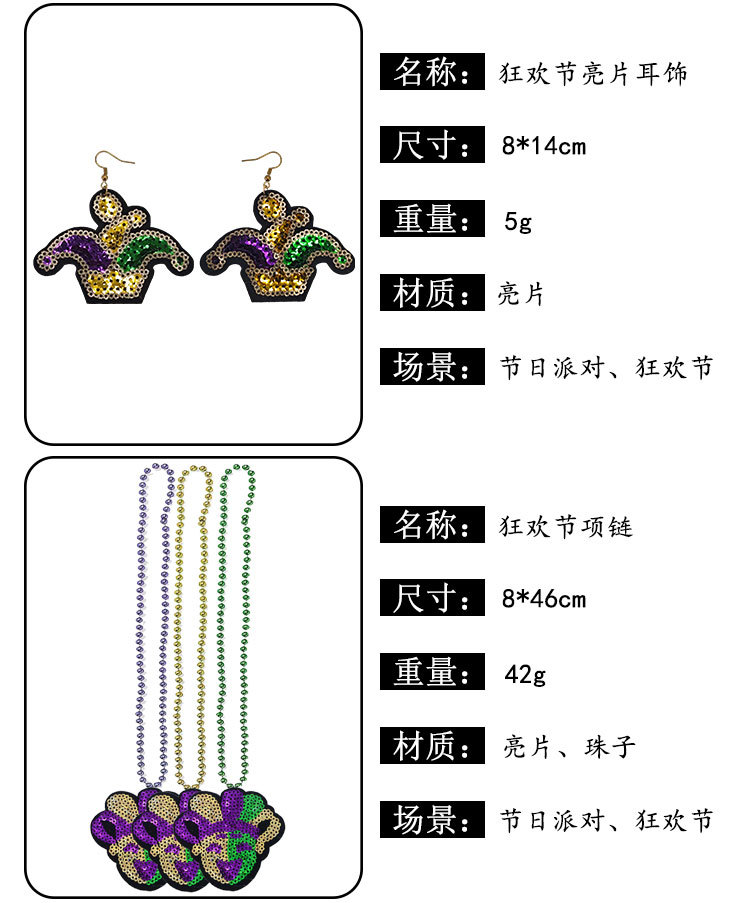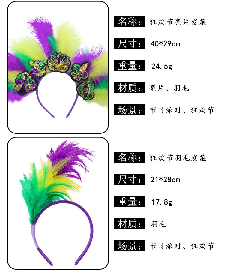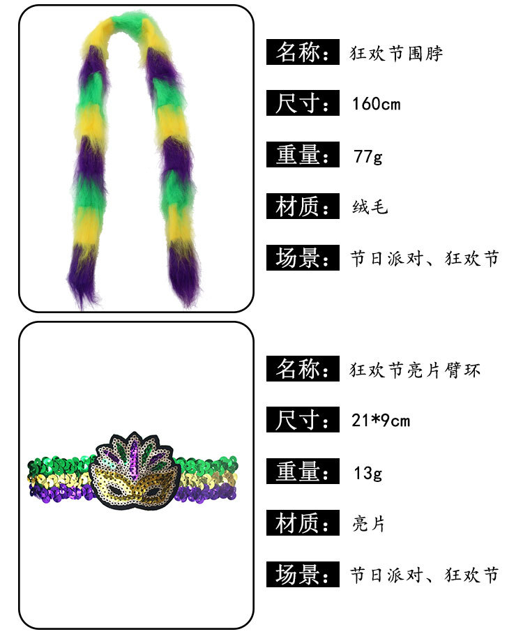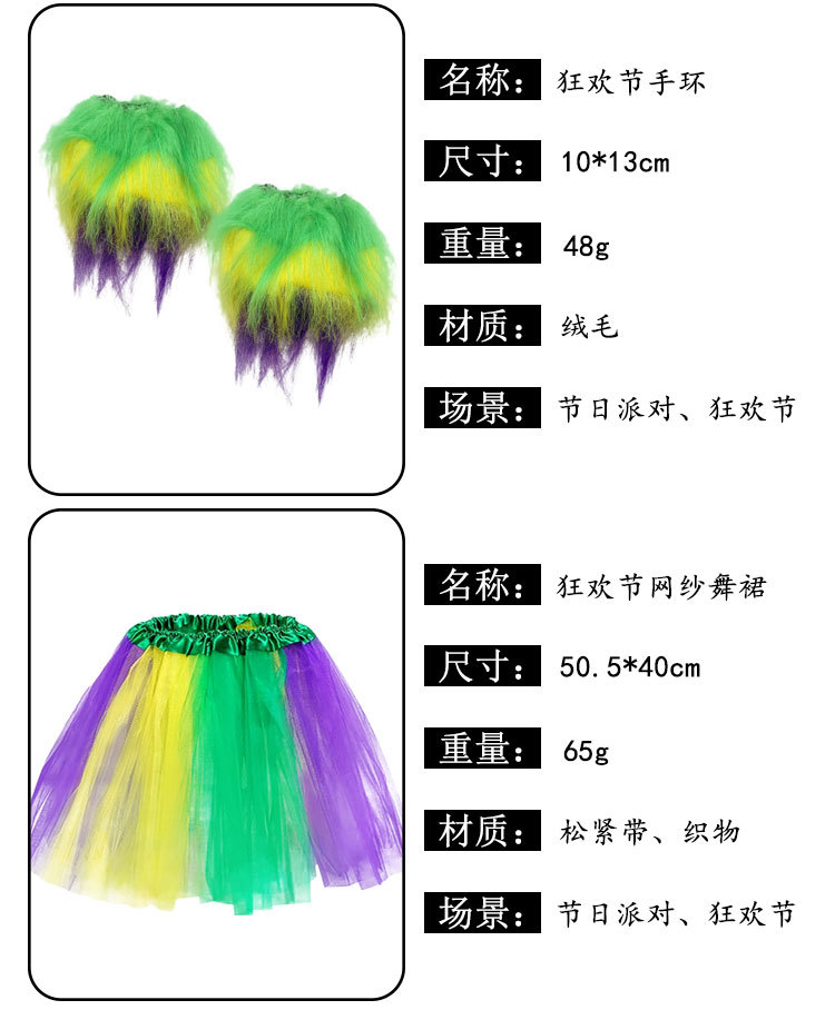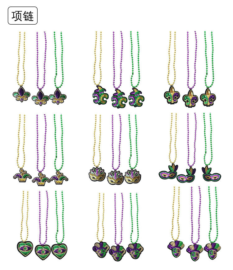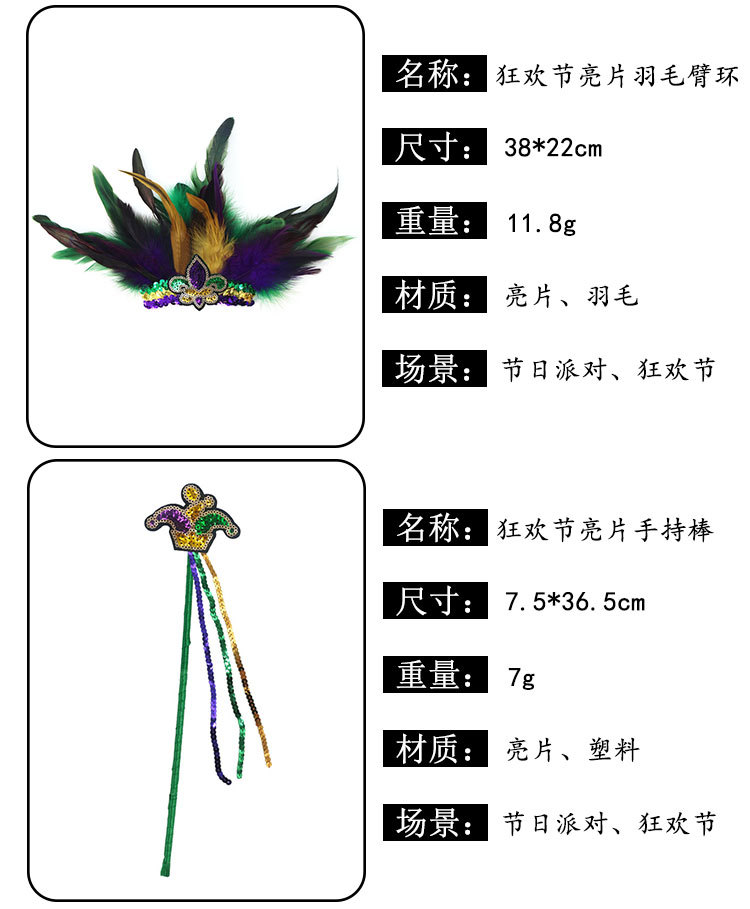 Nuevos productos transfronterizos Mardi Gras set de sequillas oro violeta verde fiesta de baile disfraz de bar espectáculo