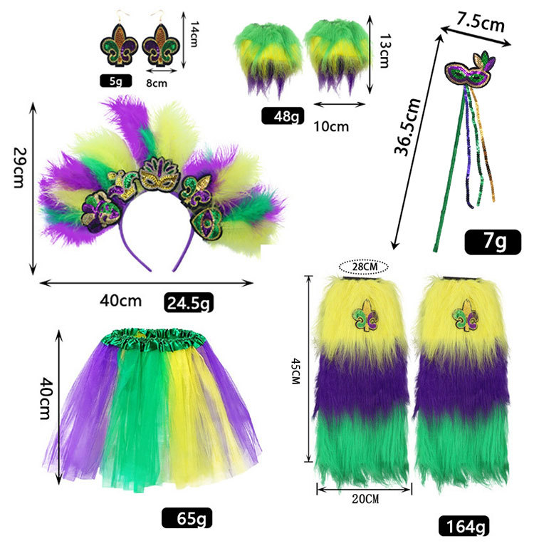 Set de tres piezas de carnaval (bandas para el cabello + falda + cubierta de piernas)
