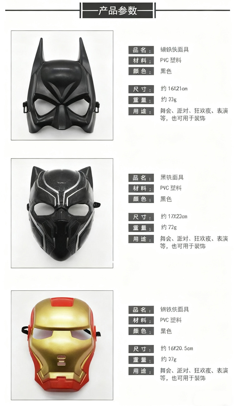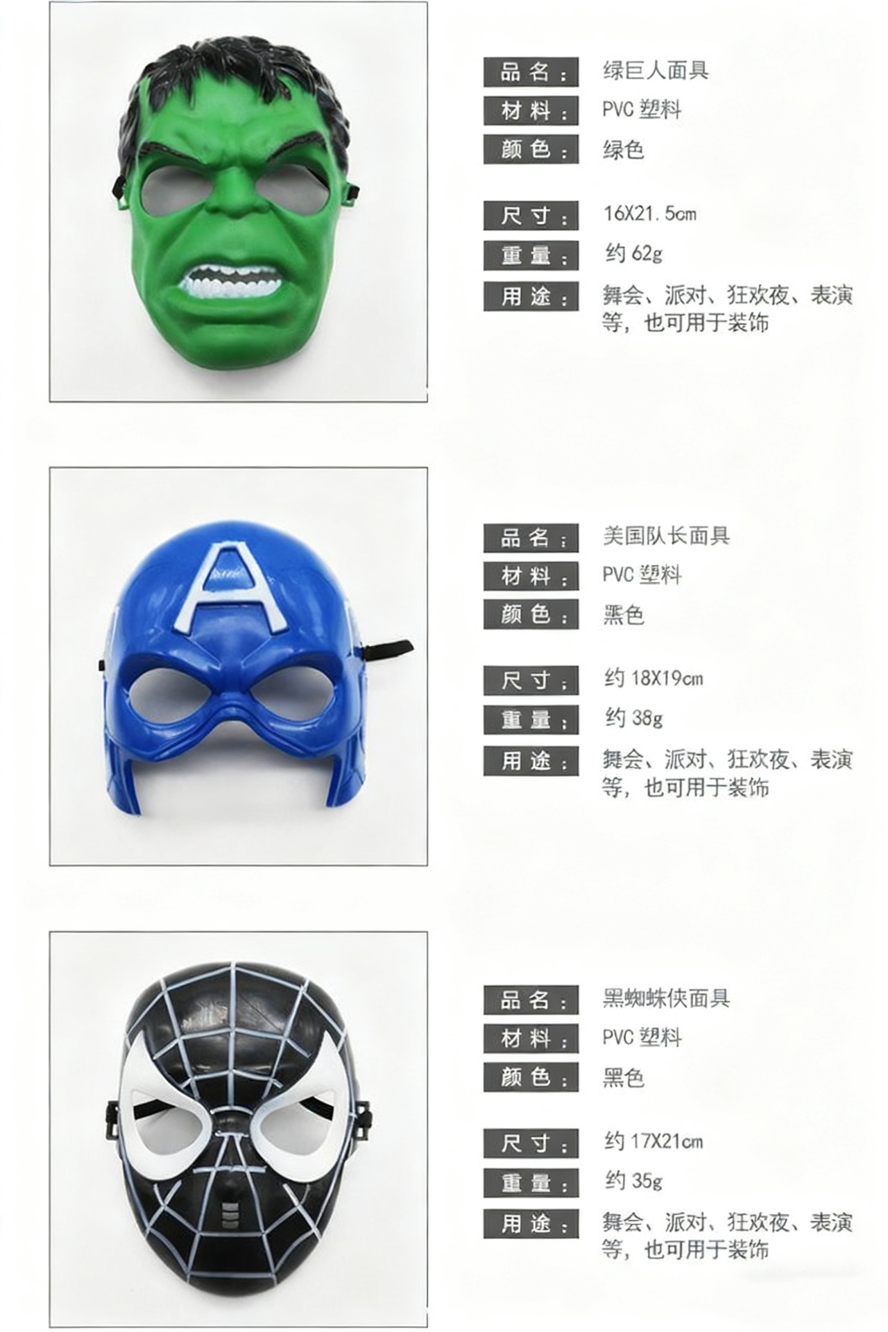 Anime transfronterizo Vengadores Spider-Man Hulk Capitán América Iron Man máscara accesorios