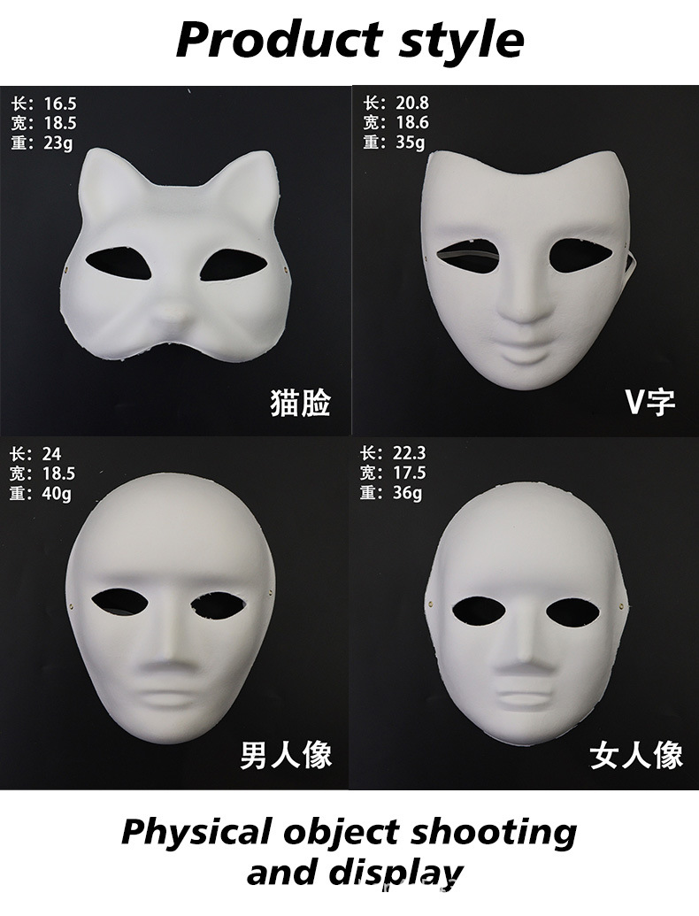 Amazon máscara de embrión blanco de venta en caliente máscara de pulpa DIY día de los niños dibujo padre-hijo props hechos a mano