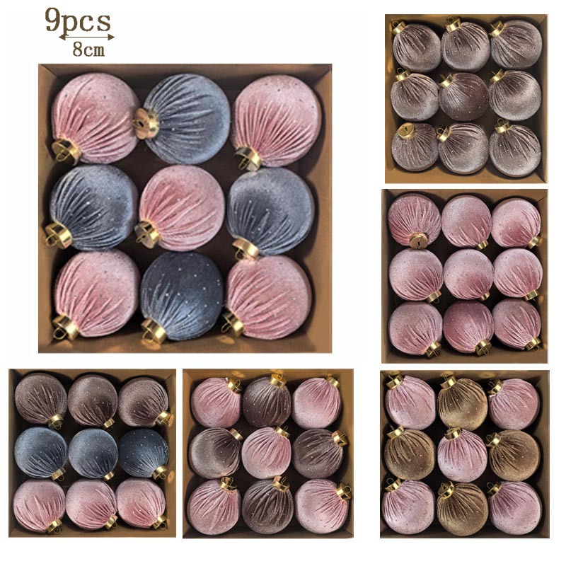 Transfronterizo 8CM set 9 lujo con taladro envuelto tela de peluche bola de Navidad árbol de Navidad bola de decoración de fiesta en casa