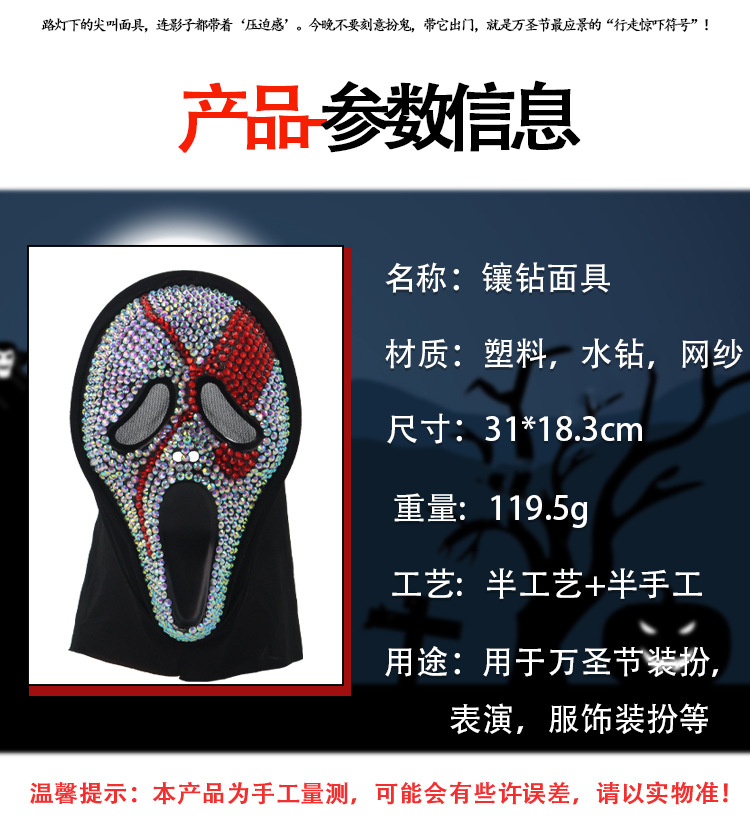 Nuevos productos transfronterizos de Halloween con taladro de la muerte gritando fantasmas máscaras de maquillaje de baile accesorios de vestuario