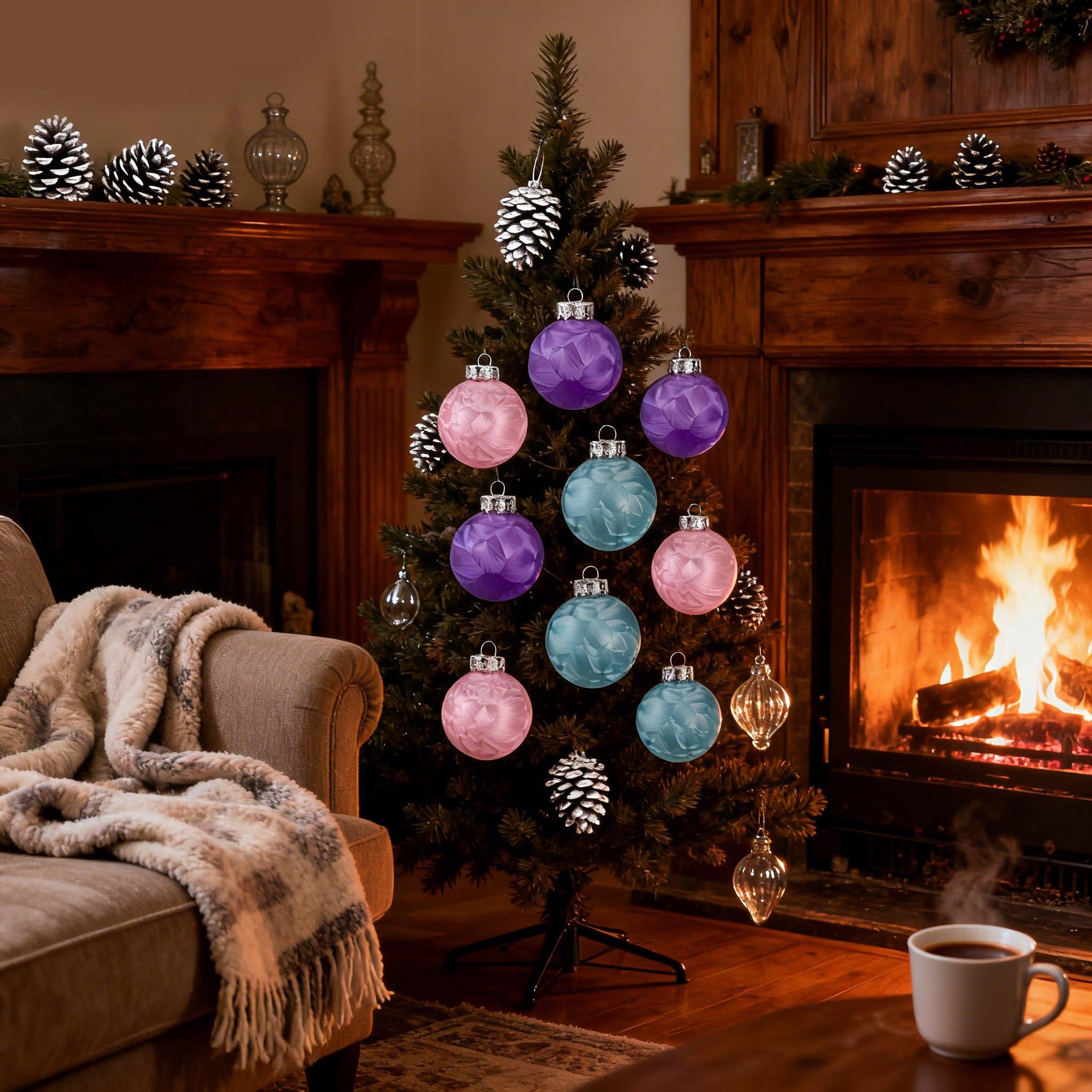 Explosiones transfronterizas 8CM plumas de plástico transparente sensación de bola de Navidad creativa bola de decoración de Navidad colgante de árbol de Navidad