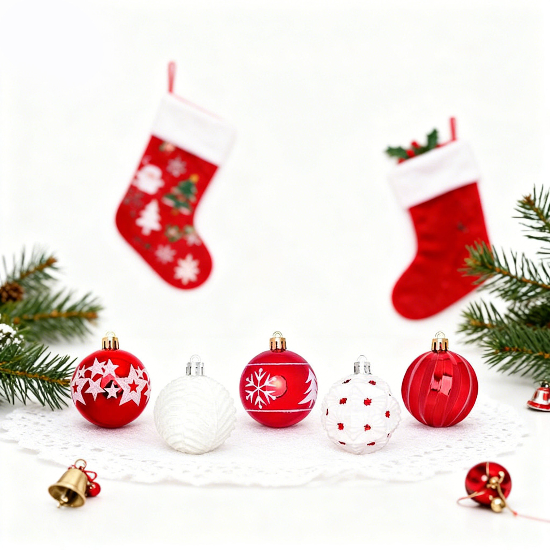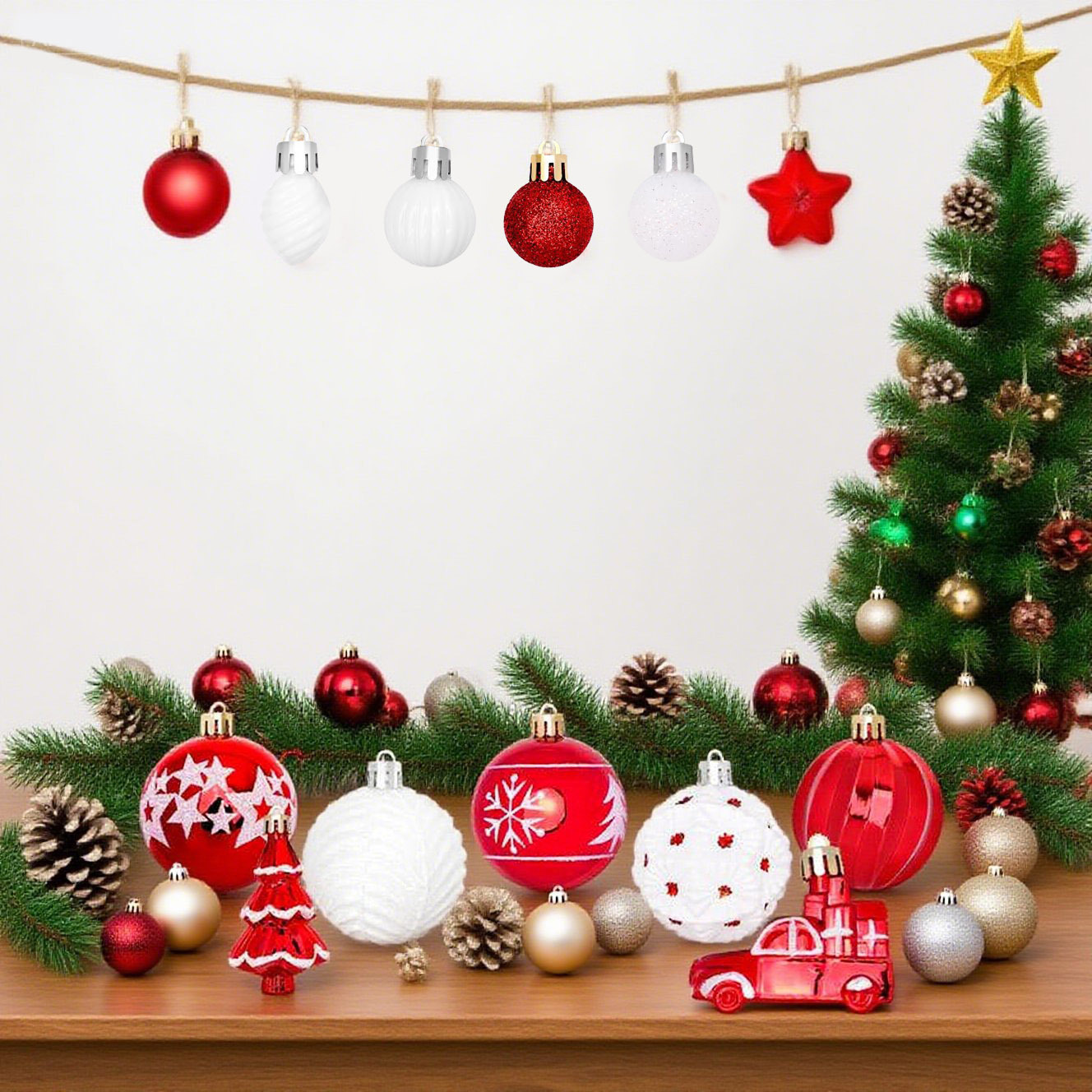 Navidad 6CM rojo y blanco 42 bolas de Navidad pintadas boutique colgante de árbol de Navidad