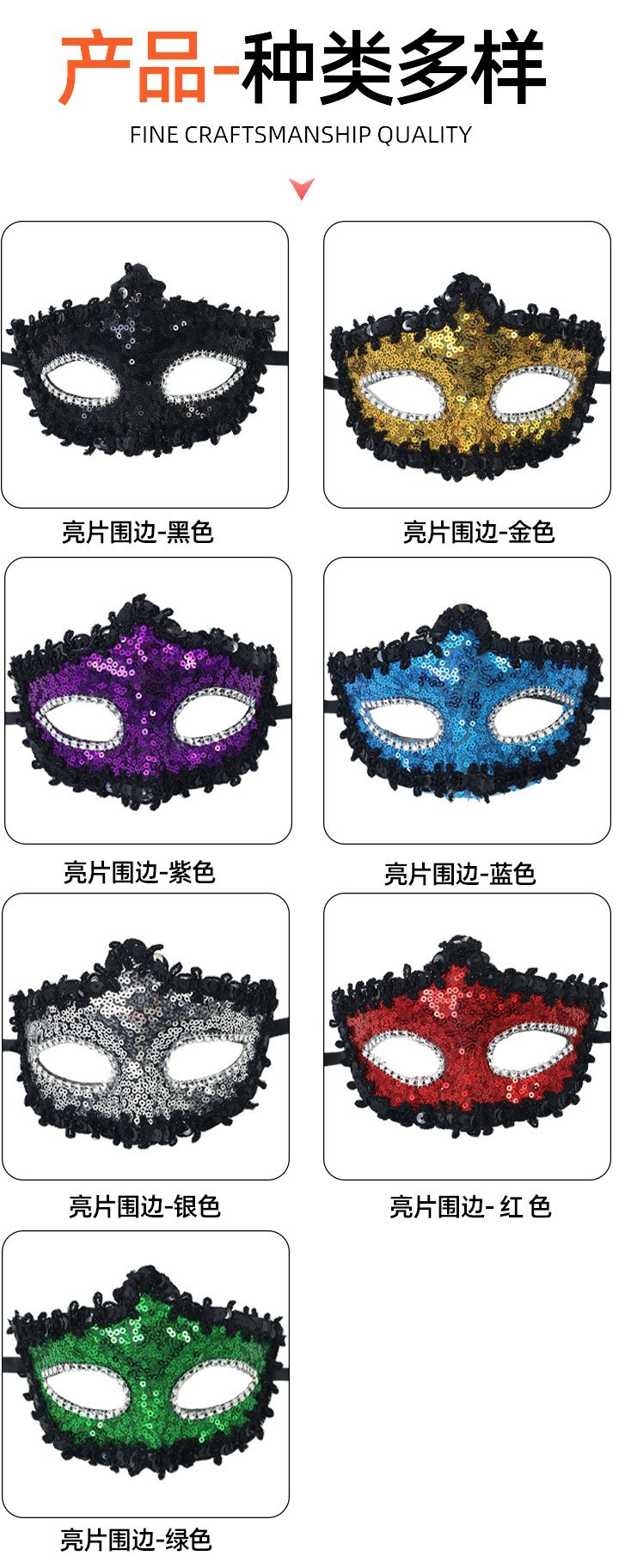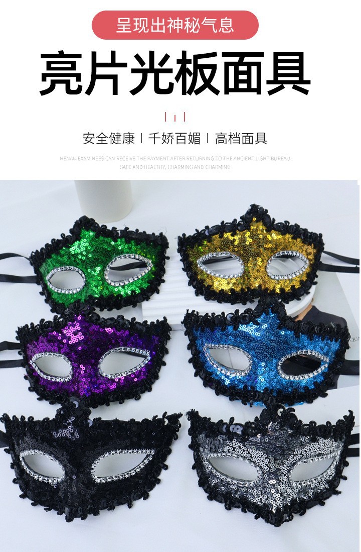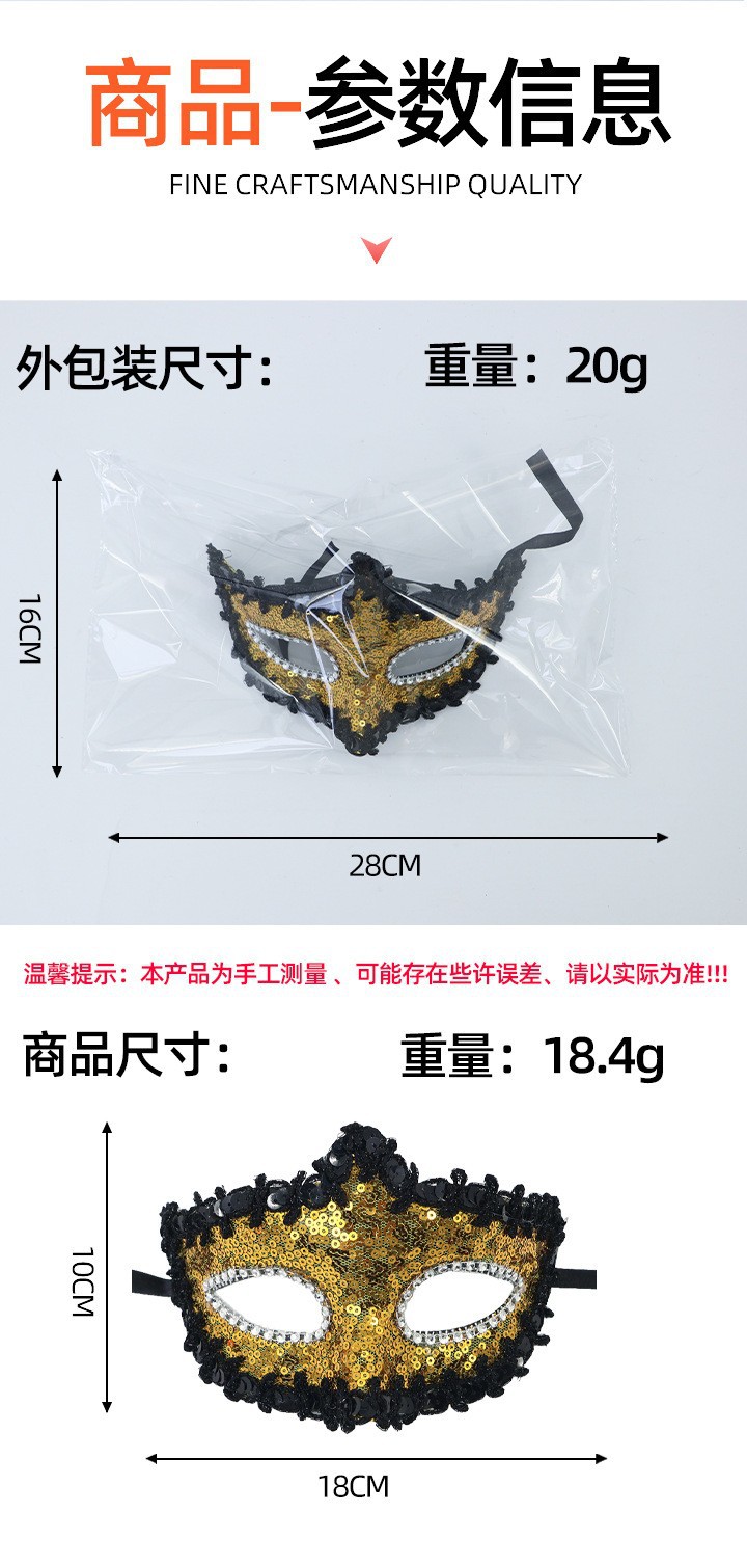Nuevo cross-border Halloween sequinado baile media cara máscara de fiesta misteriosa sexy vestido de moda damas máscara de ojos