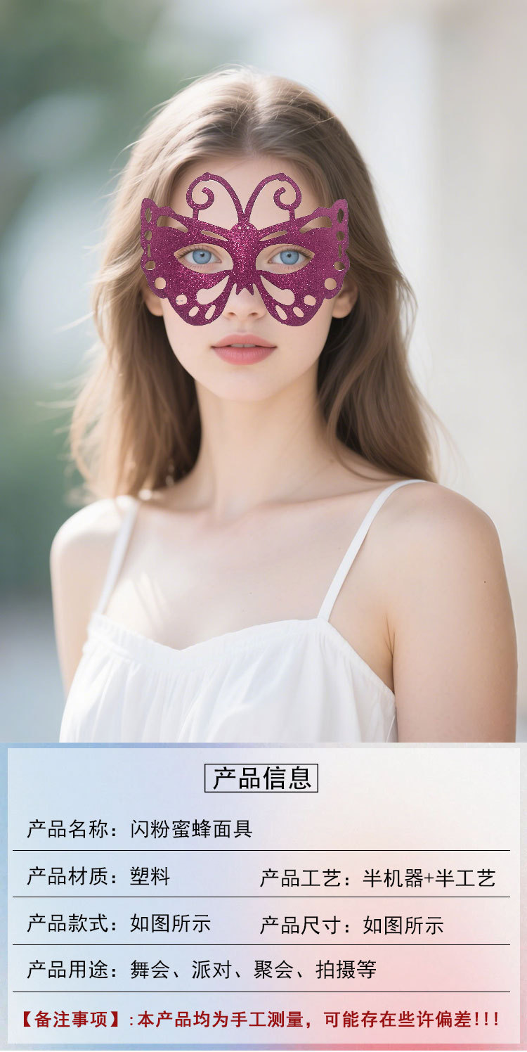 Amazon oro polvo abeja máscara de carnaval de Navidad fiesta de máscaras polvo flash hueco máscara de mitad de cara