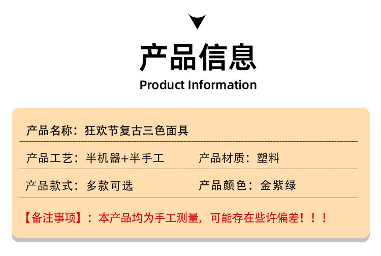 Carnaval ventas en caliente nuevo tricolor retro máscara de mitad de cara carnaval party disfraz prop máscara de escenario