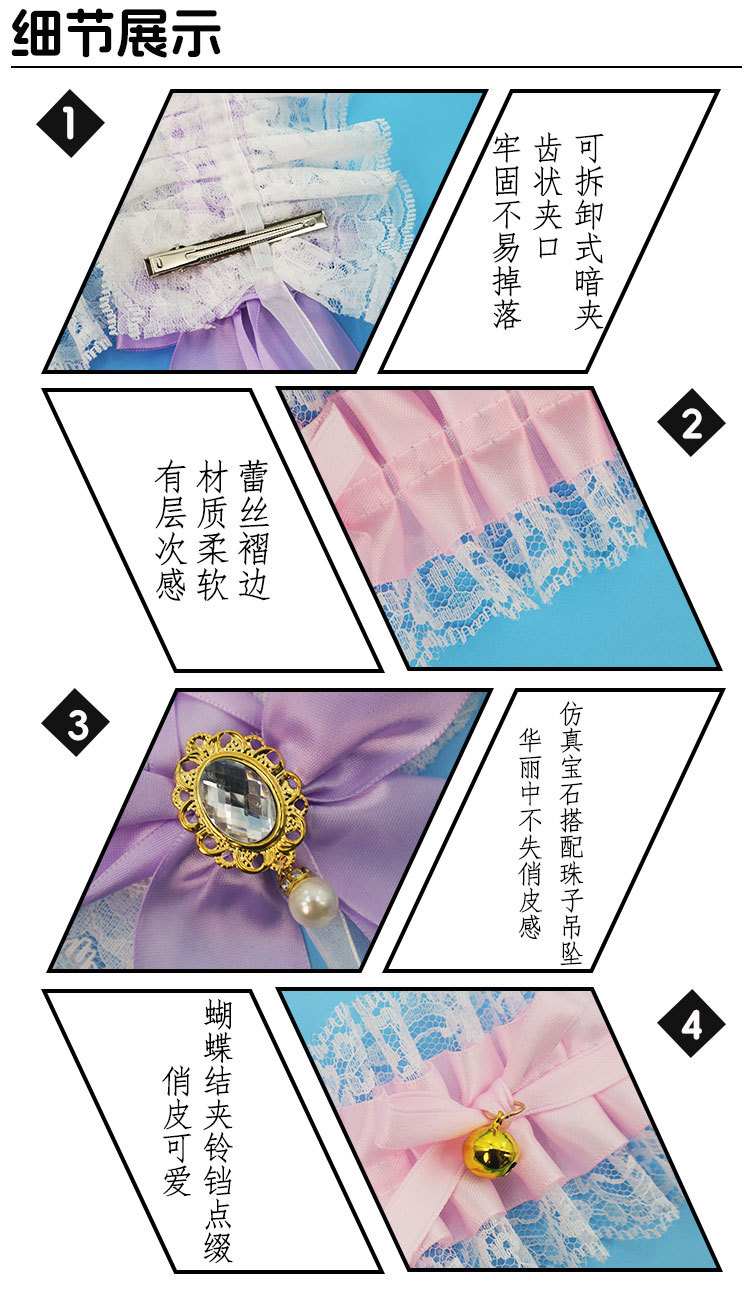 Lolita al por mayor encaje correa de cabello conjunto de clipes de cabello brazalete decoración de Halloween carnaval navidad conjunto de adornos de cabello