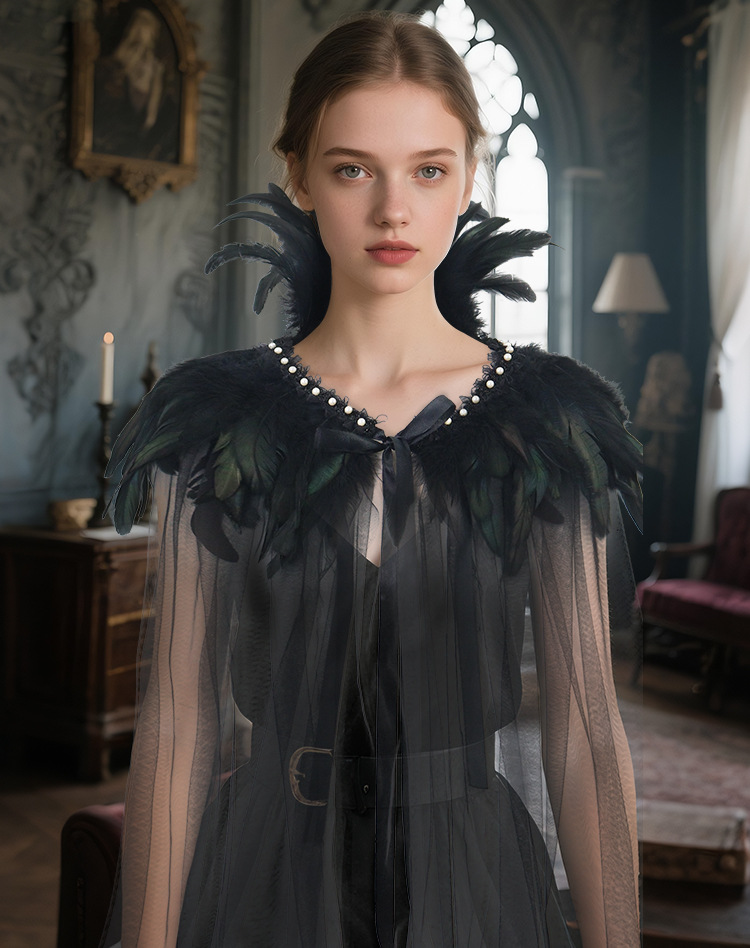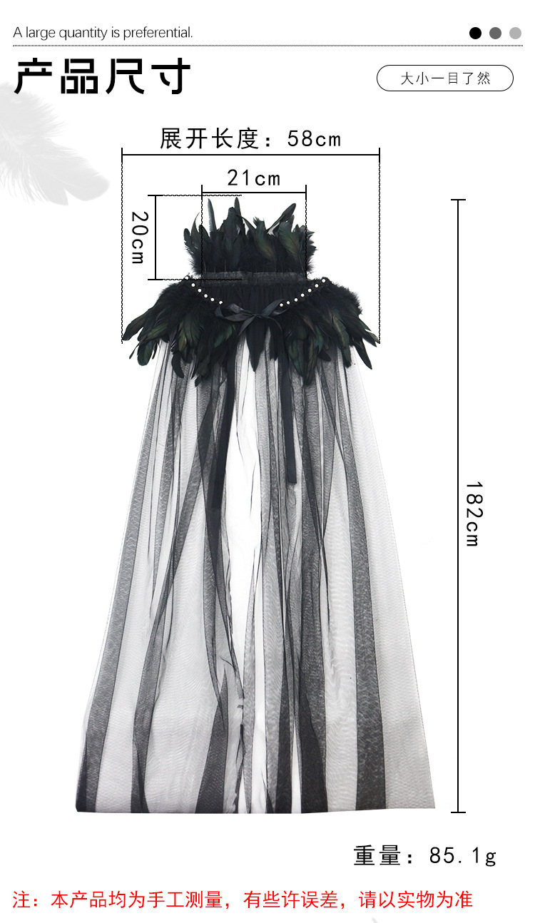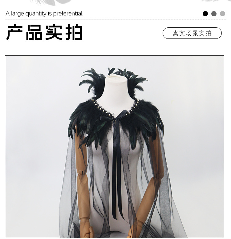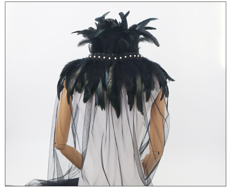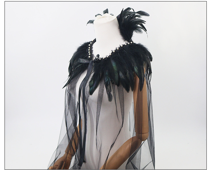 Halloween Europa y América plumas perlas chal espectáculo de baile de baile accesorios de disfraz de fiesta oscuro vestido de desfile