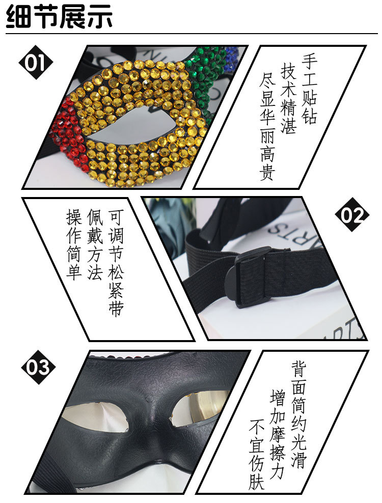 Carnaval transfronterizo máscaras de mitad de cara de diamante máscaras de pareja de cara de zorro de diamante de Halloween