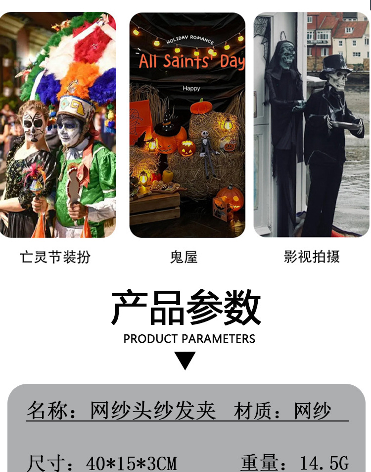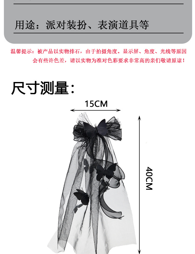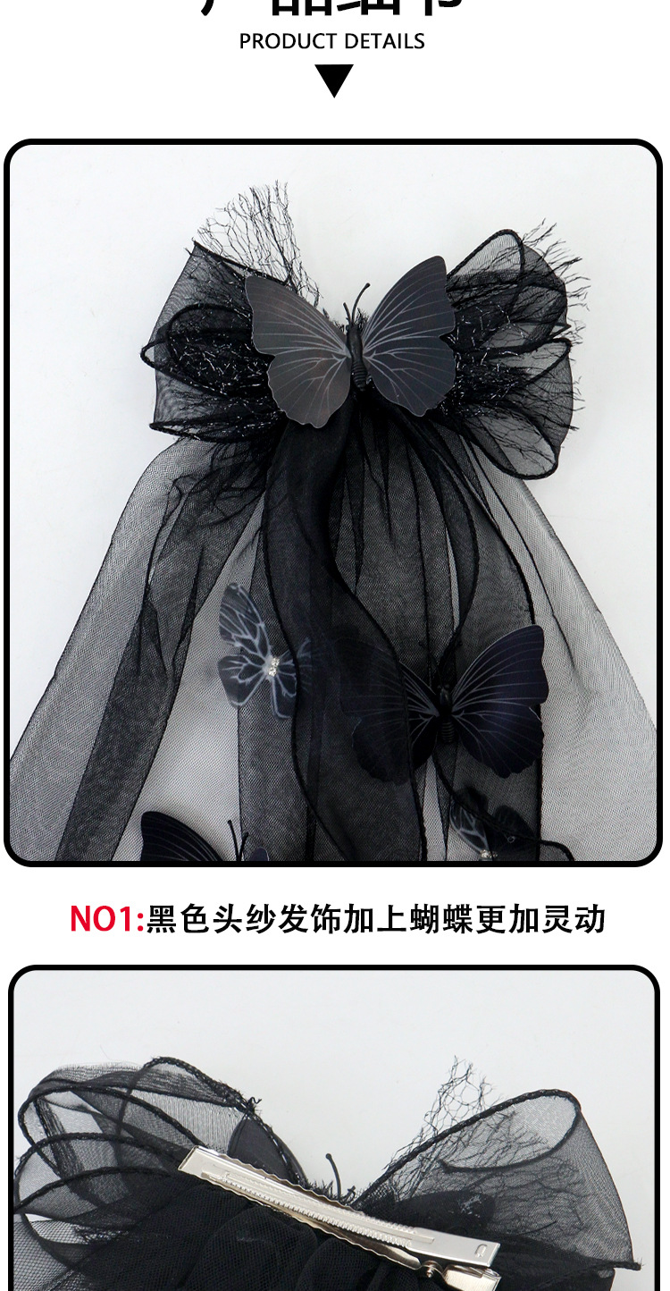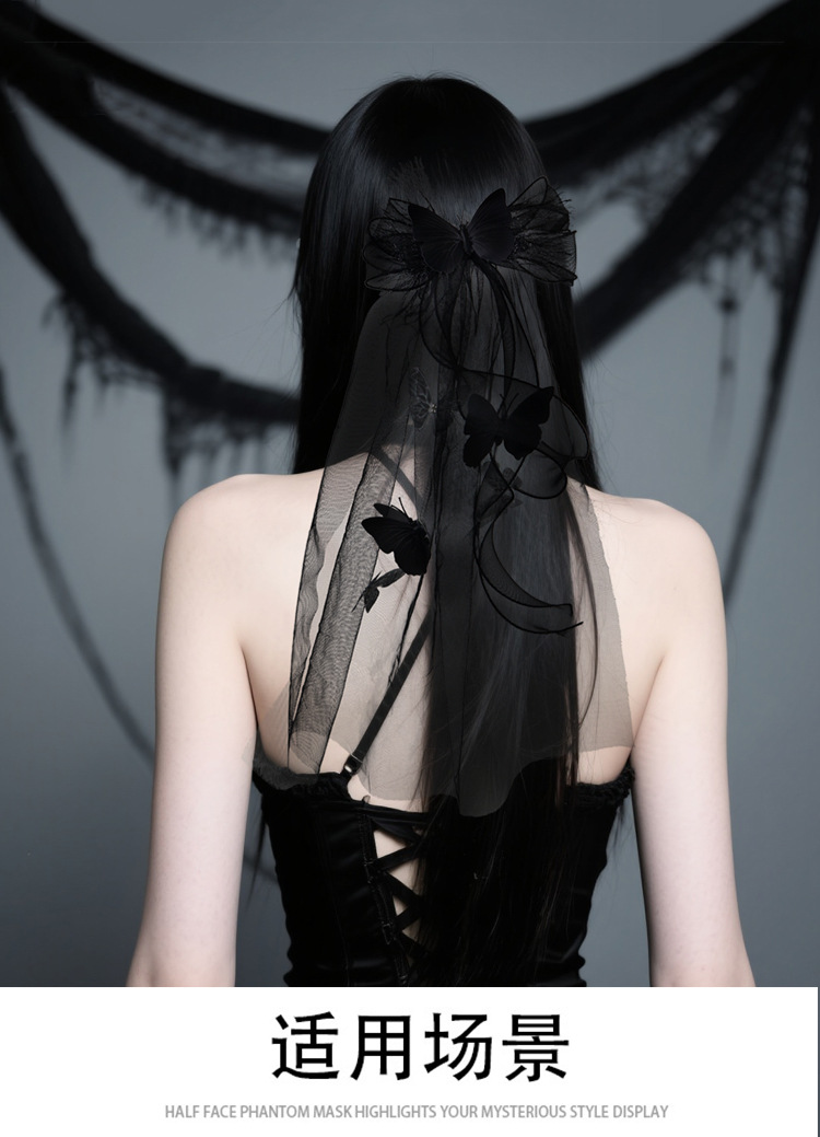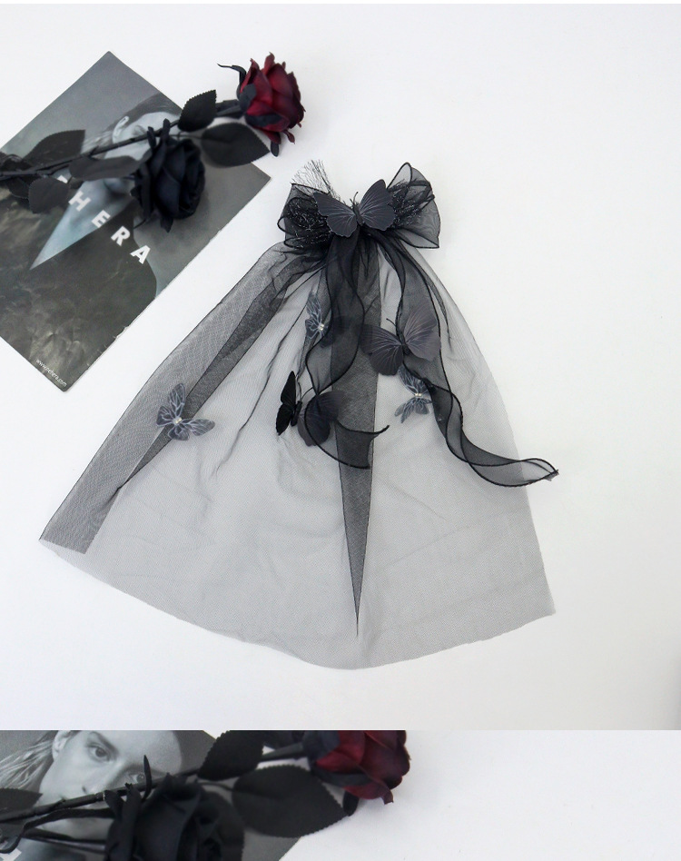Nuevo tocado de Halloween transfronterizo oscuro mariposa broche de pelo fantasma vestido negro para la novia accesorios de fotografía