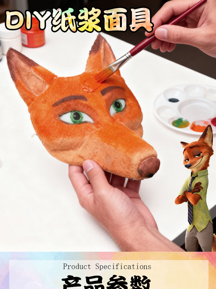 Máscara de pulpa DIY Zoo City Crazy Primavera Serie Judinique Leopard Oficial Lightning máscara de peluche Blanco