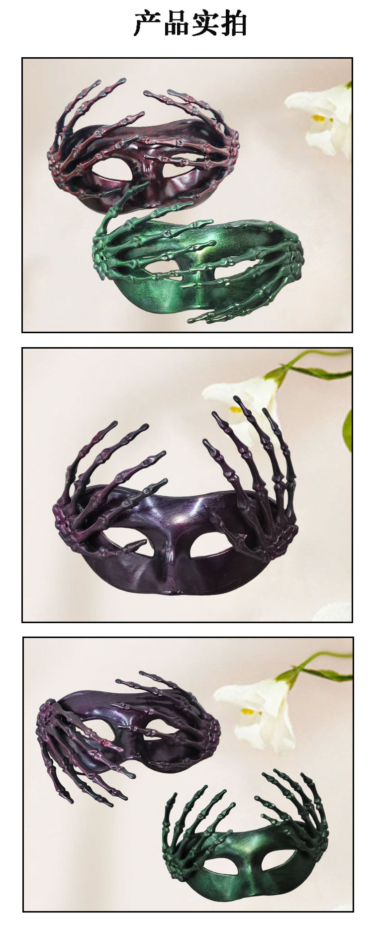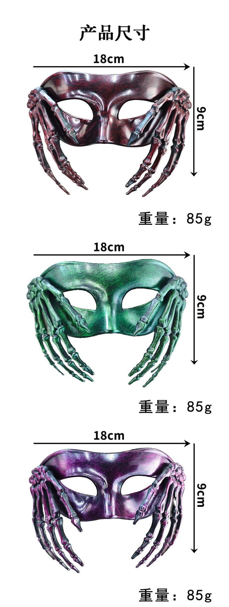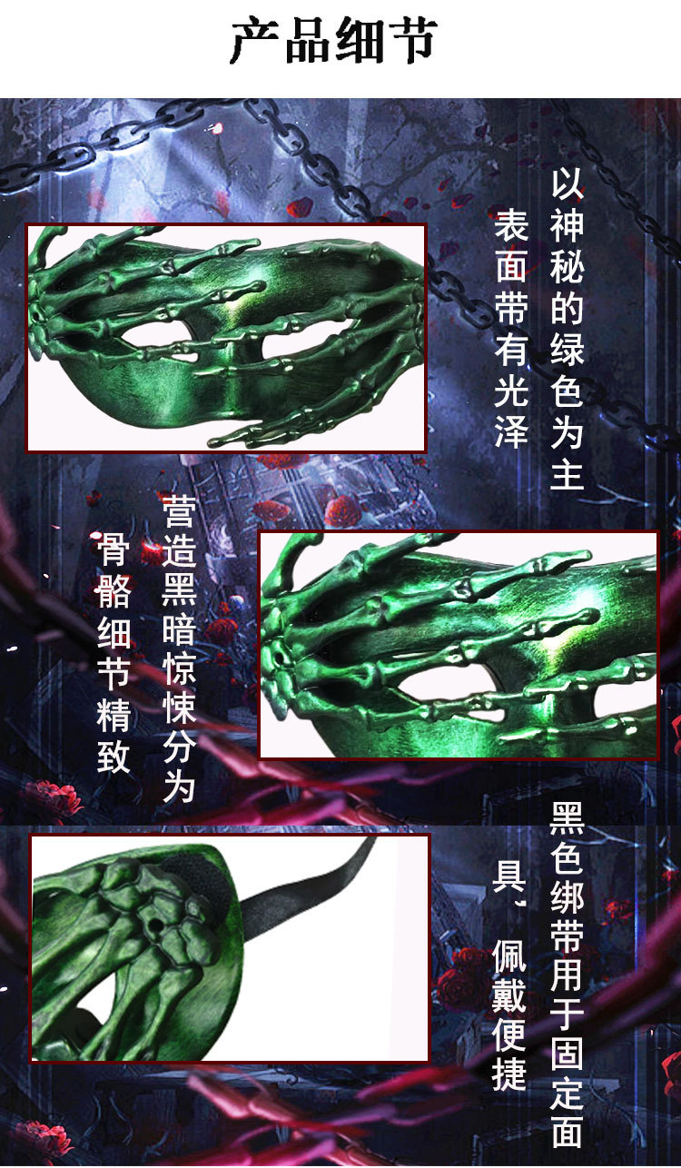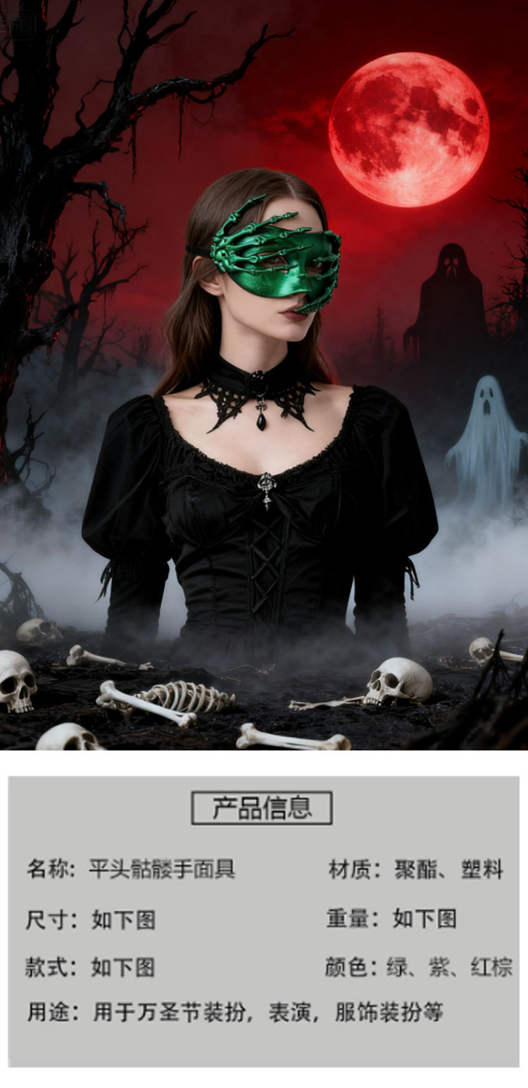 Halloween transfronterizo esqueleto mano máscara retro fiesta de carnaval horror mitad cara máscara accesorios de vestuario