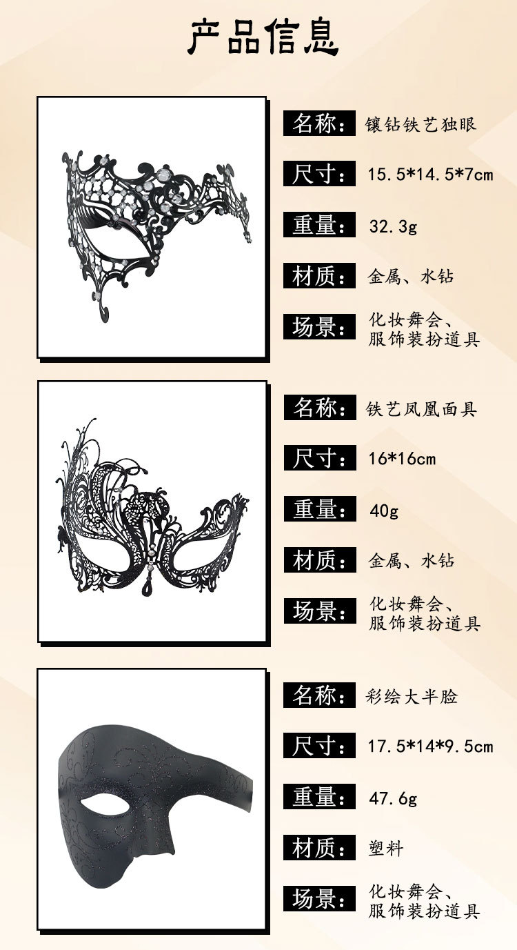 Carnaval Venecia espectáculo de baile de máscaras props hierro forjado máscaras de diamantes máscaras de metal medio cara roja