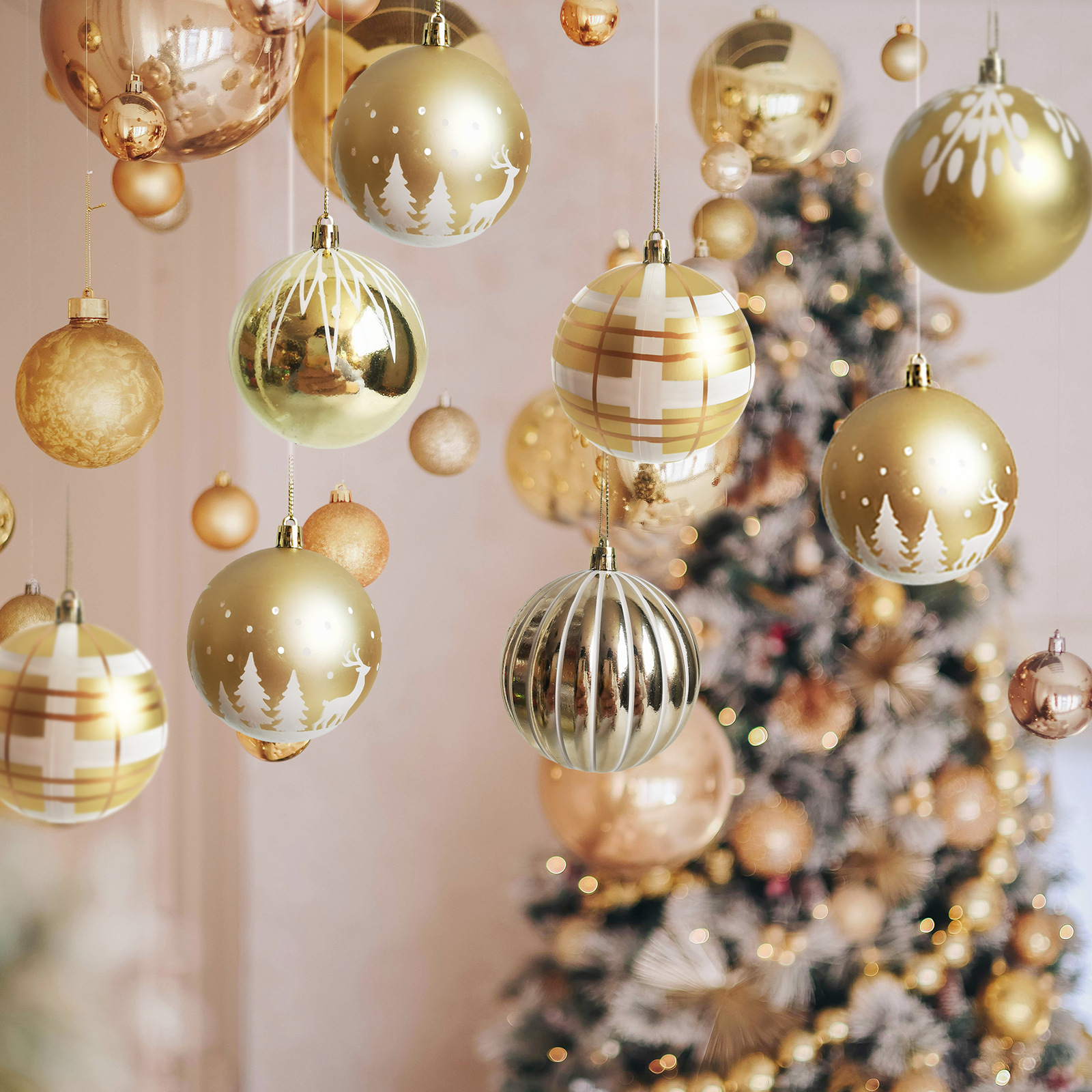Navidad spot 8cm9PCS platino pintado galvanizado bola de Navidad de plástico árbol de Navidad atmósfera festiva bola decorativa
