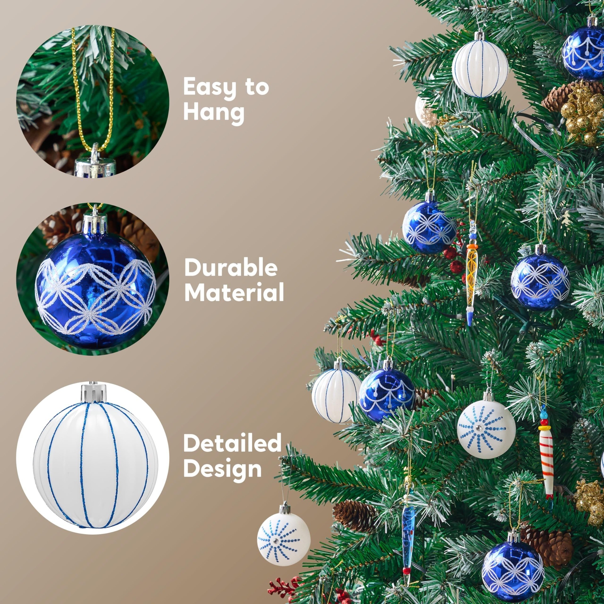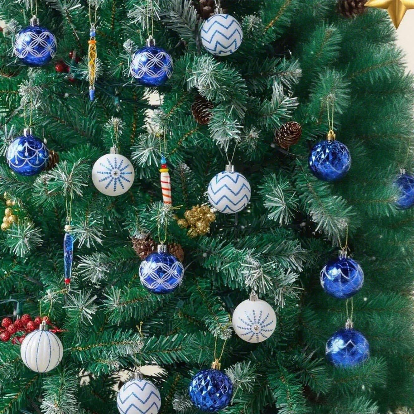 Bolas decorativas de plástico de Navidad 6cm30 piezas azul y blanco pintado conjunto árbol de navidad casa fiesta colgante bola