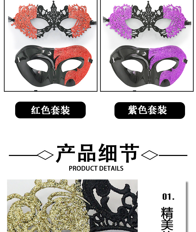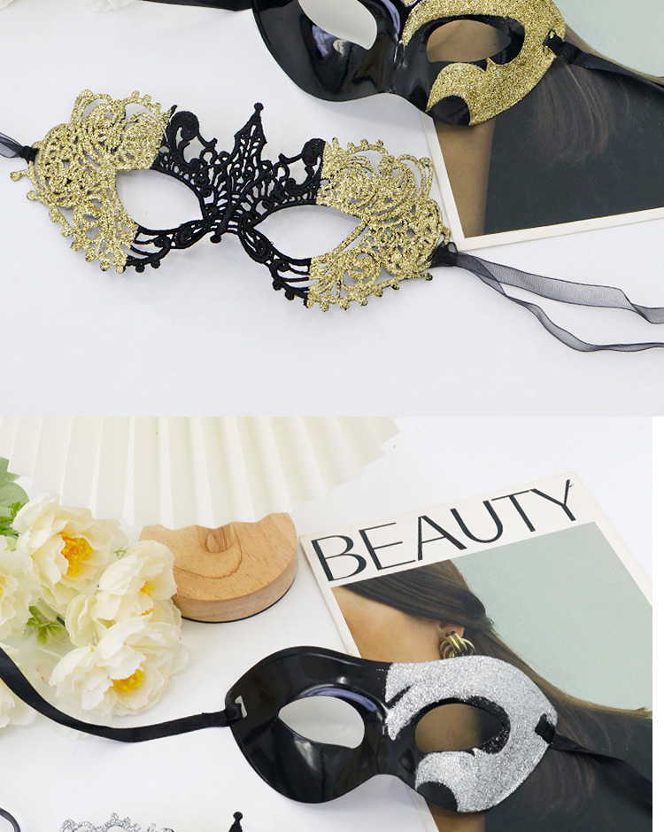 Explosiones de Halloween jazz mitad cara encaje plano plástico duro pintura aerosol máscara de fiesta masculina y femenina mayorista