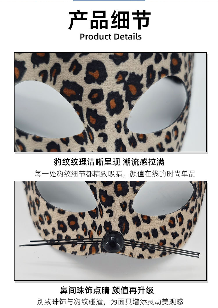 Amazon nueva máscara de Halloween rotty leopardo máscara de baile de máscaras mitad cara máscara de color sólido carnaval