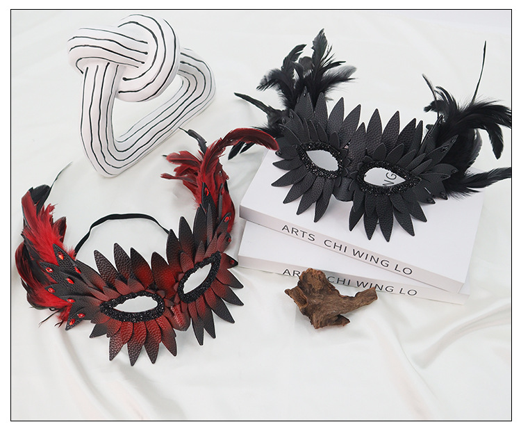 Halloween de alta calidad mitad cara cuero plumas pico de baile máscaras de fiesta accesorios bar interesantes para adultos