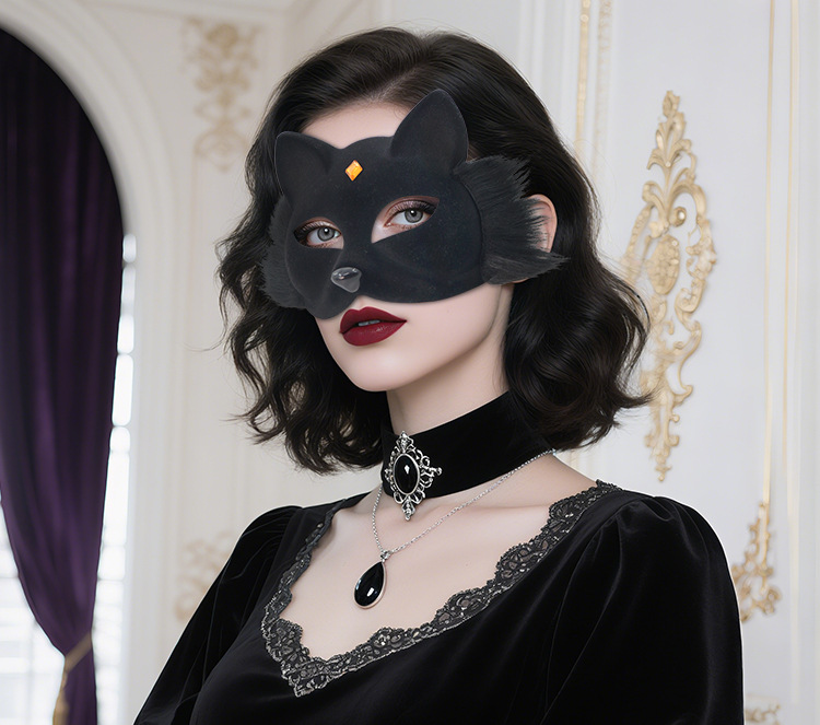 Halloween nueva máscara de zorro negro felino femenino espectáculo de fiesta de baile de alto nivel capa de tapa de ojos