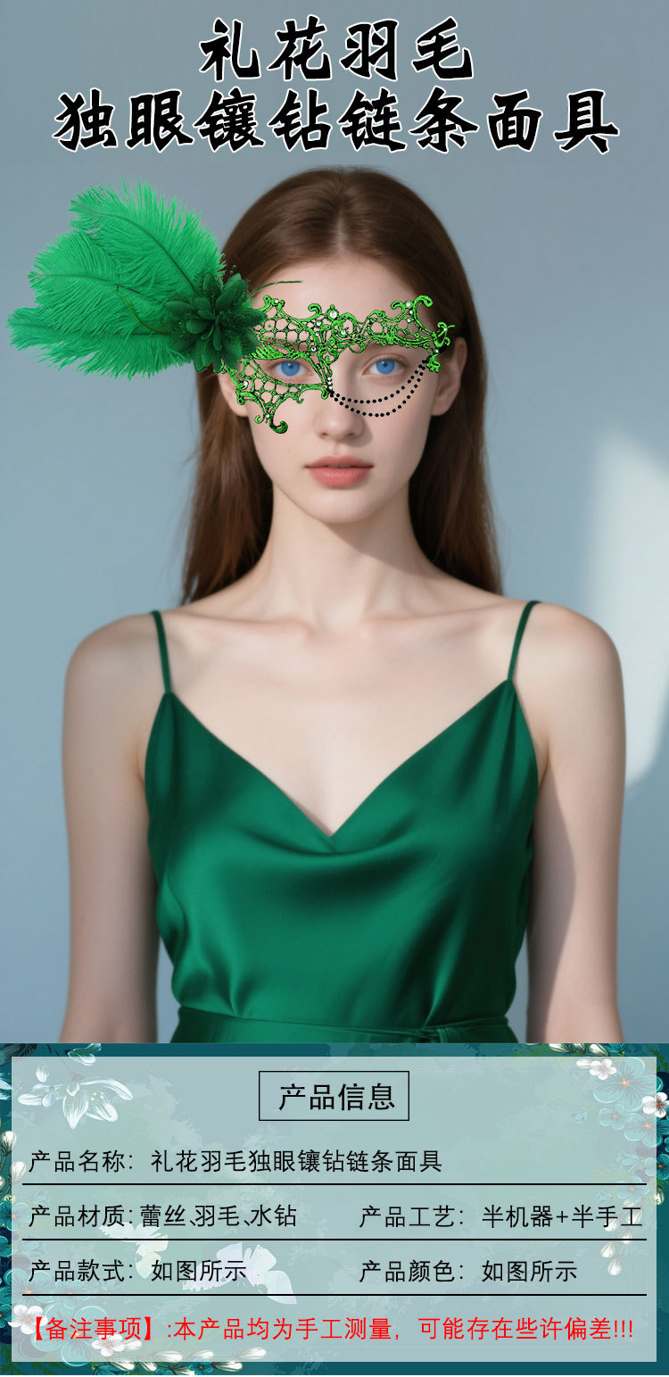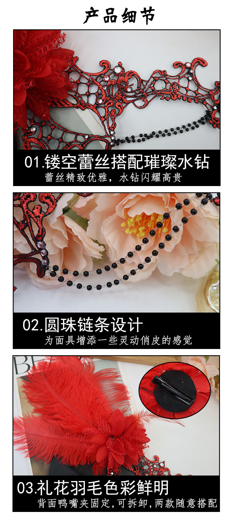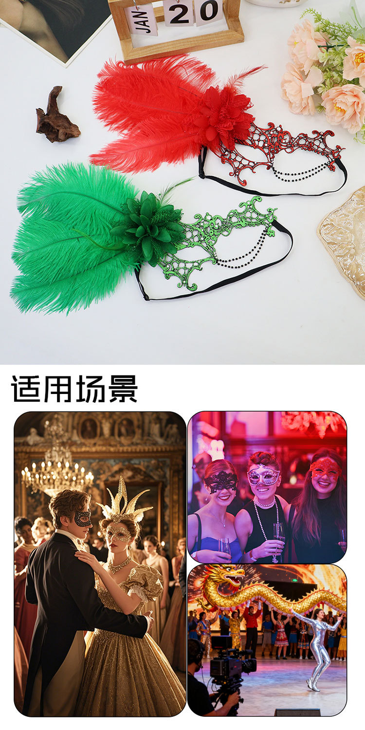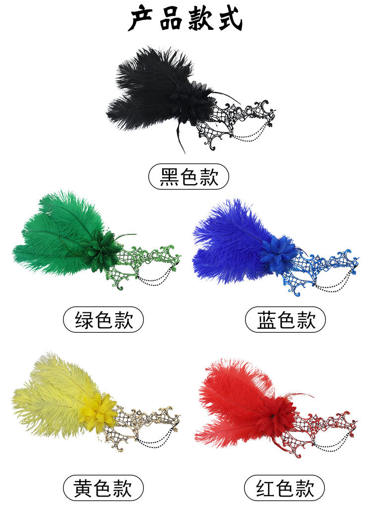 Ventas transfronterizas calientes de Halloween nuevas plumas de encaje gradiente máscara de mitad de cara maquillaje de baile accesorios de vestuario sexy