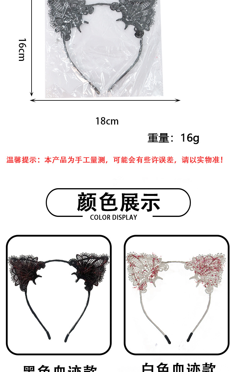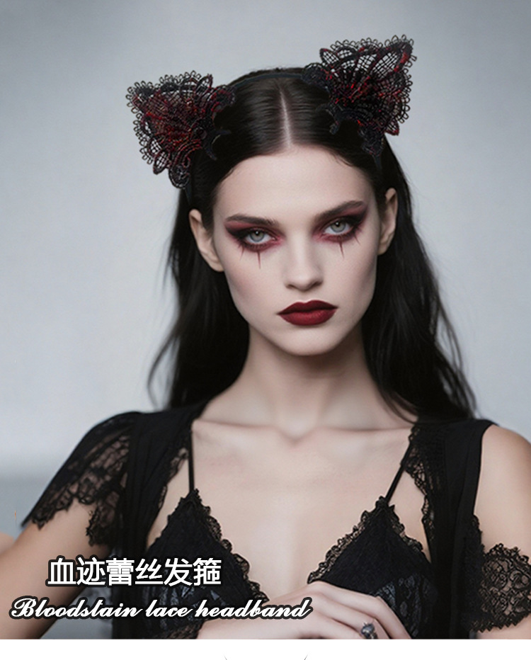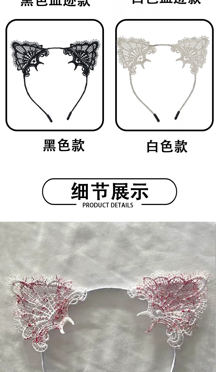 Amazon transfronterizo Halloween encaje lindo gato oreja banda de cabello mujer banda de cabello dulce rojo simple adornos de cabello TK