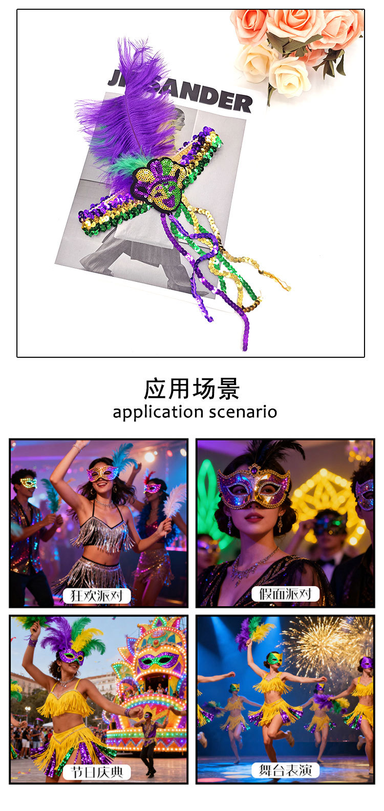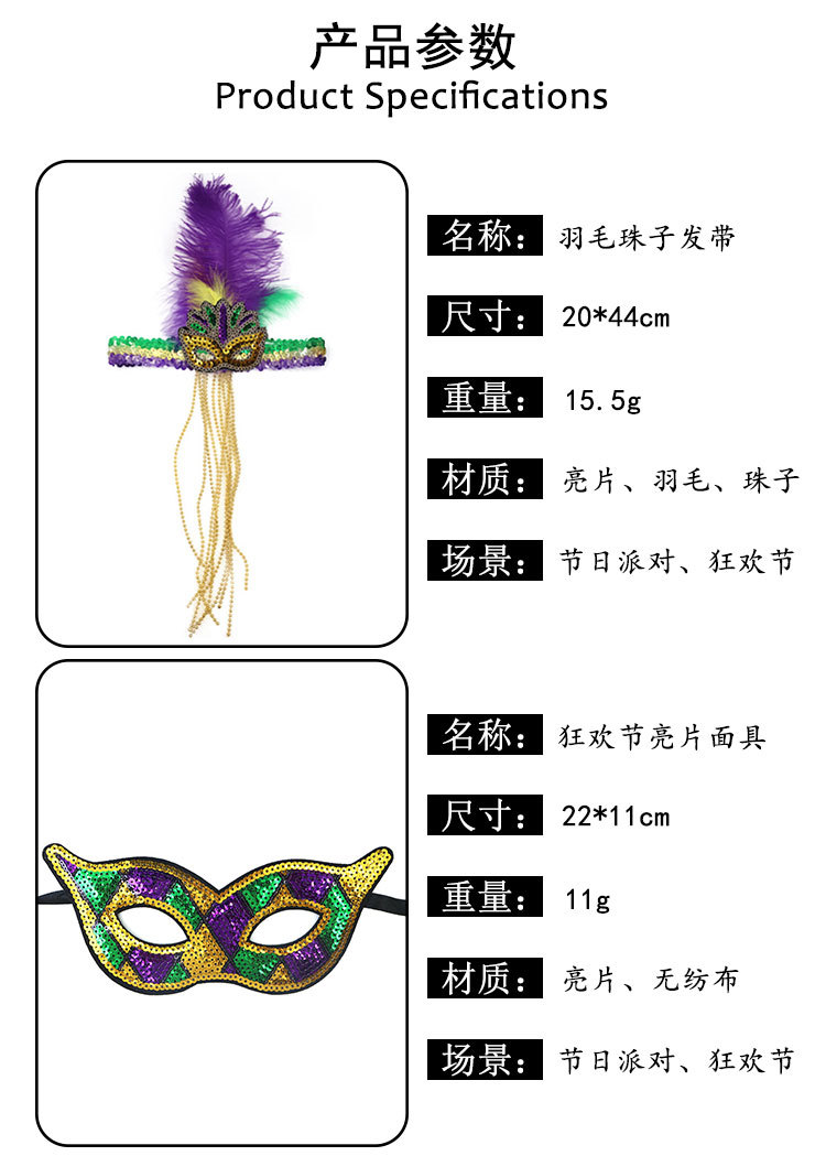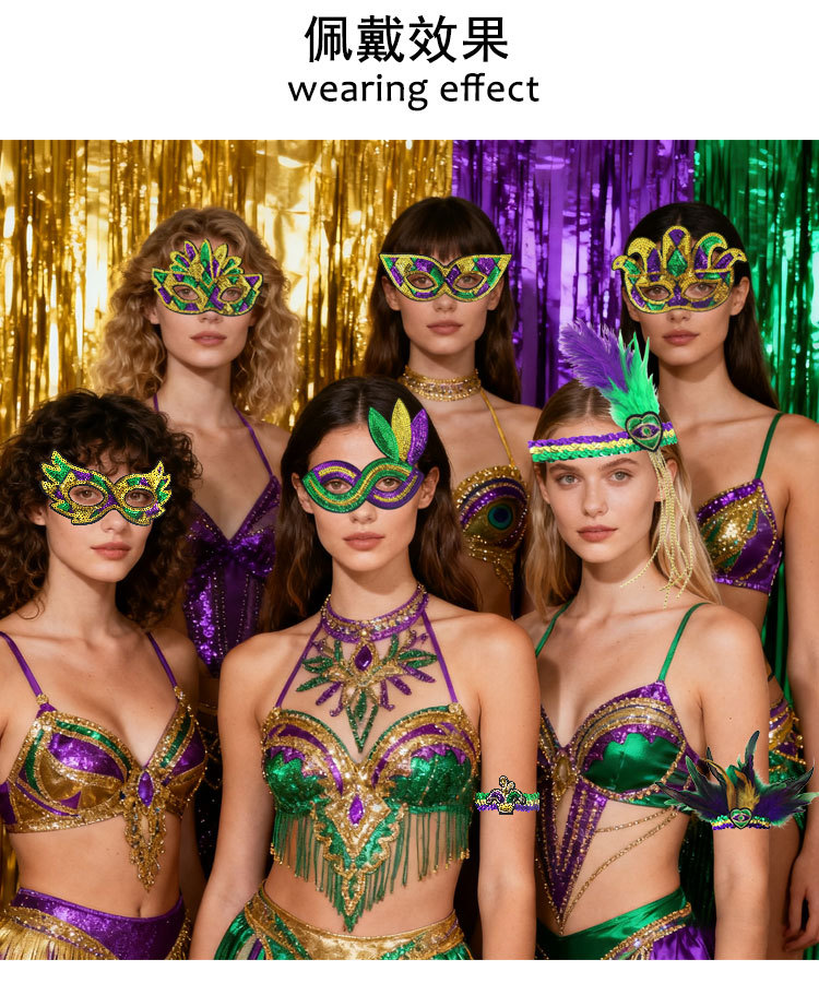 Mardi Gras fiesta de carnaval brasileño transfronterizo oro púrpura verde tricolor piezas de vestuario