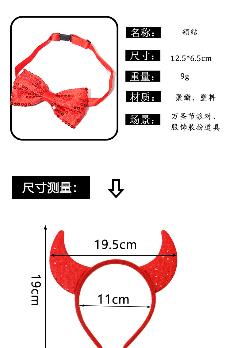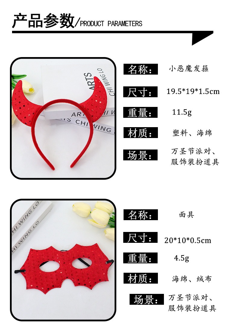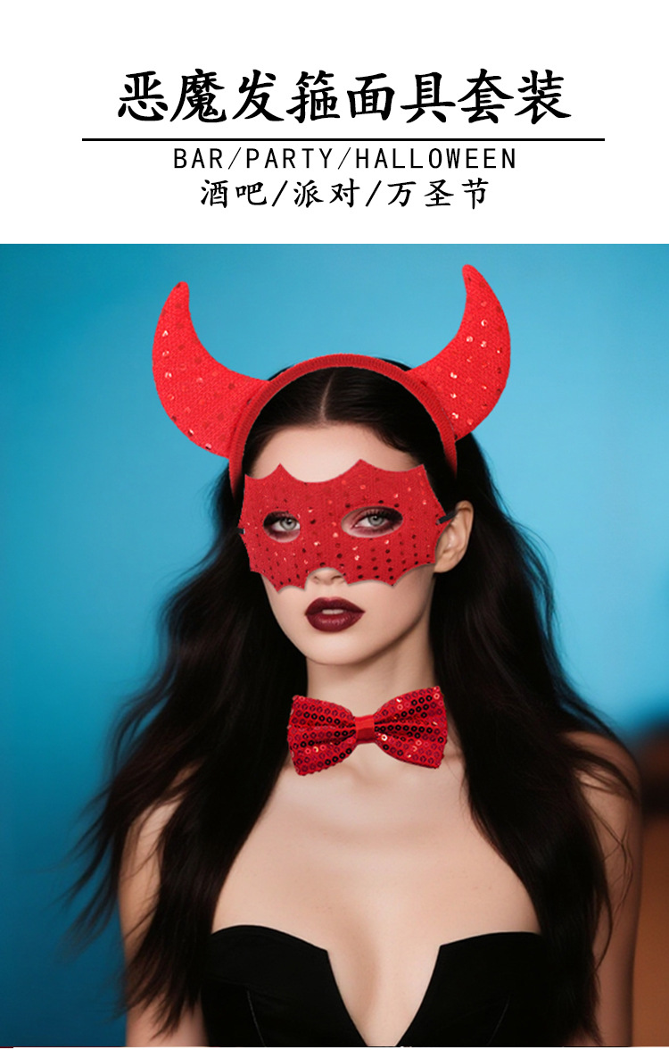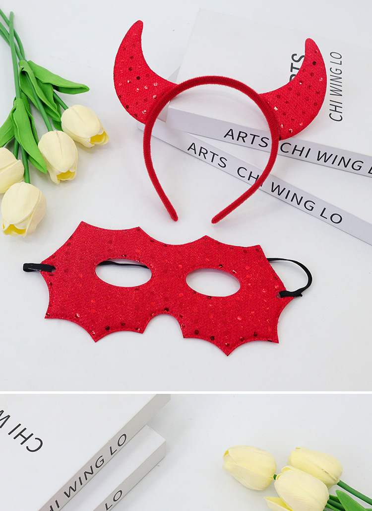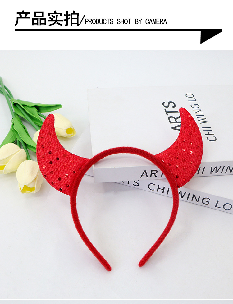Halloween encantador diablo conjunto de decoración de cuerno de toro cabello bandos de cabeza bandos diablo tenedor de decoración de vacaciones props fábrica al por mayor