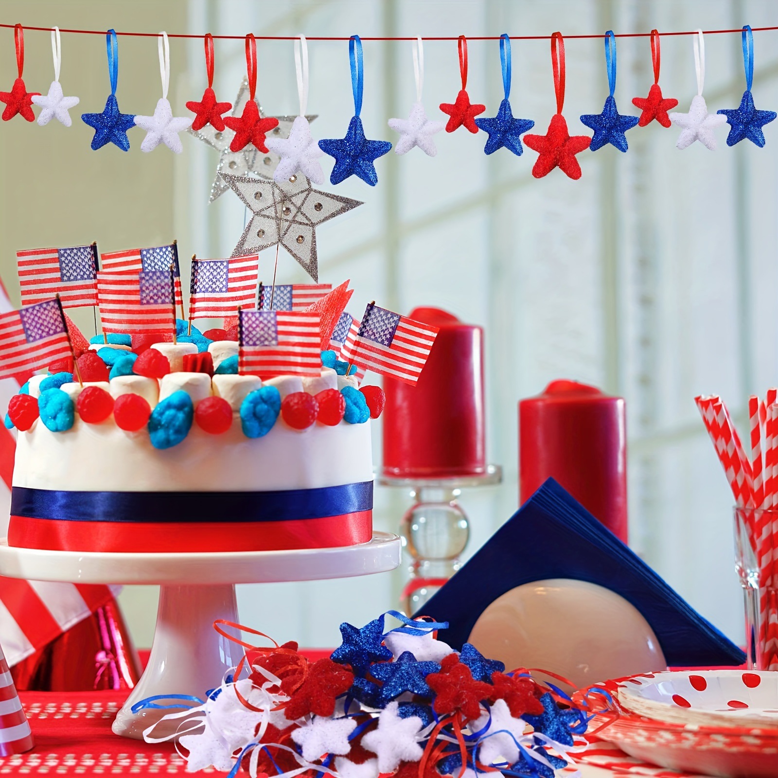 Especial transfronterizo para el Día de la Independencia de EE. UU. Espuma estrella de cinco puntas Decoración colgante pequeño Día nacional Decoración de ambiente