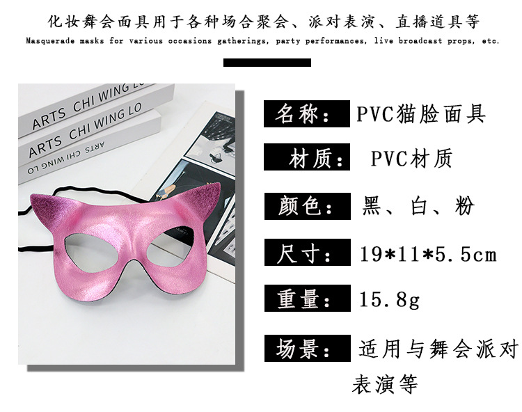 Amazon transfronterizo PVC cara de gato mitad cara máscara de color sólido espectáculo de fiesta sexy dama máscara de ojos TK