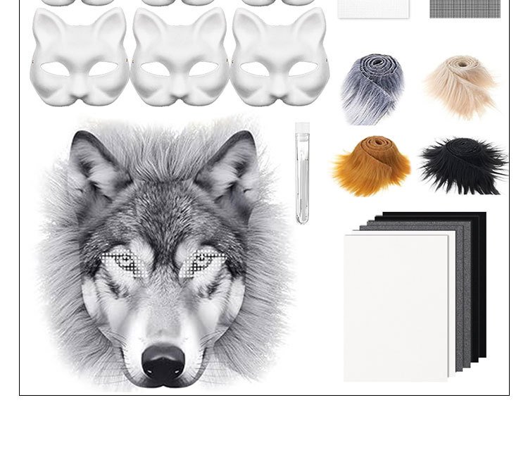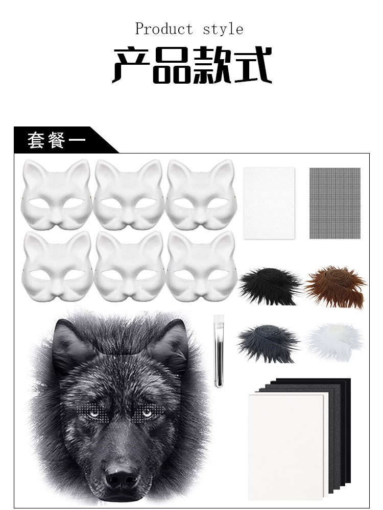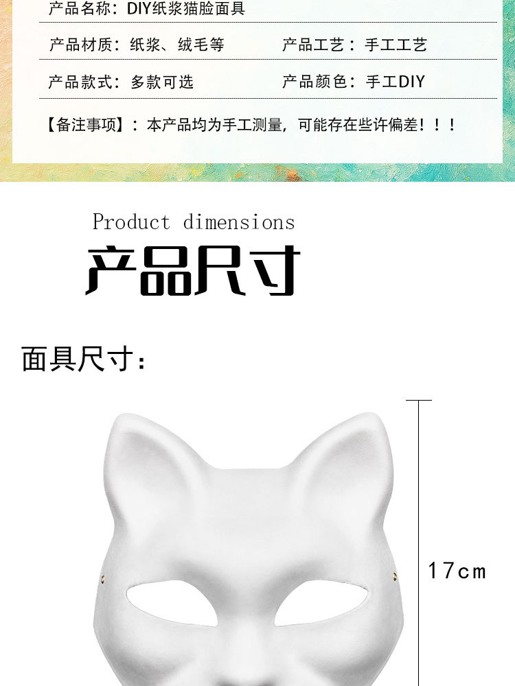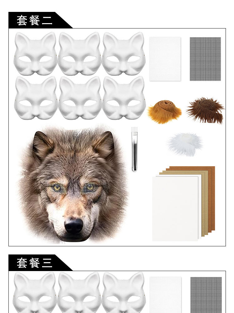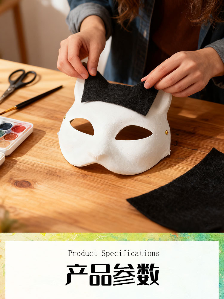 Máscara de pulpa blanca DIY transfronteriza mitad cara cara de gato cara de zorro máscara de terciopelo decoración de cabeza de bestia máscara de pintura a mano