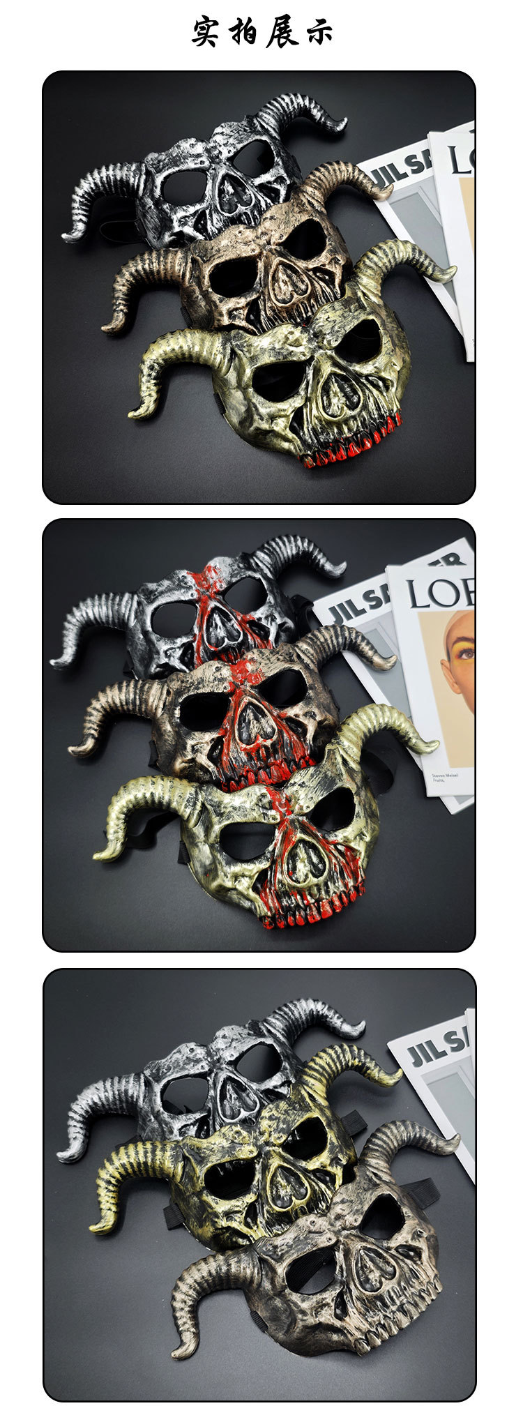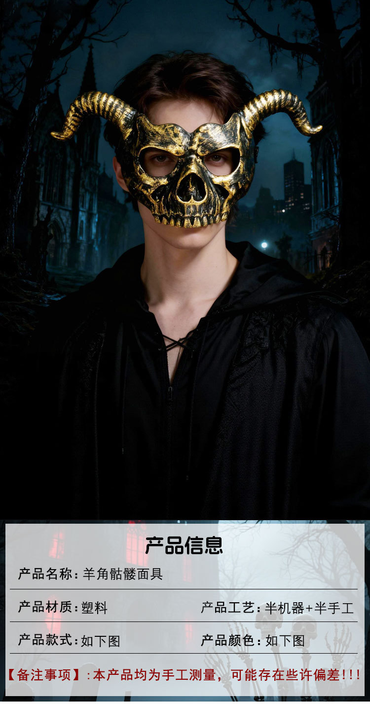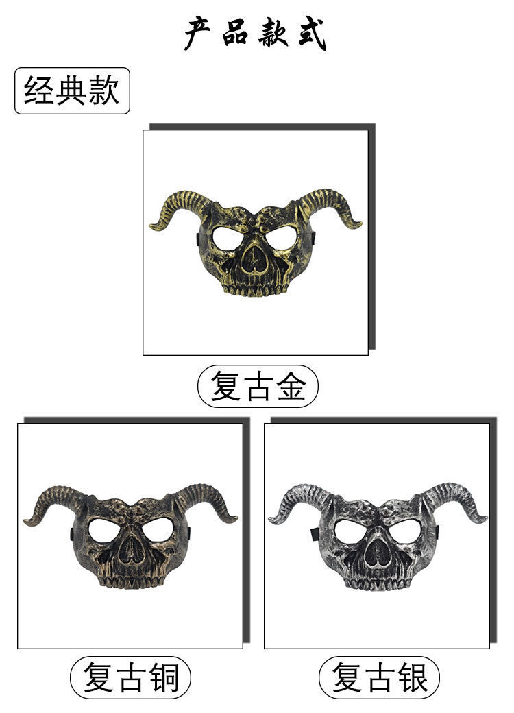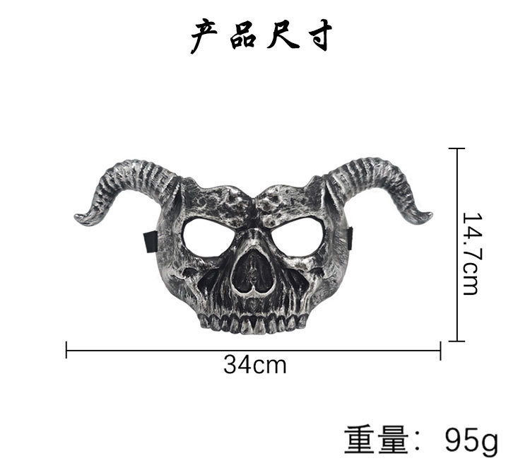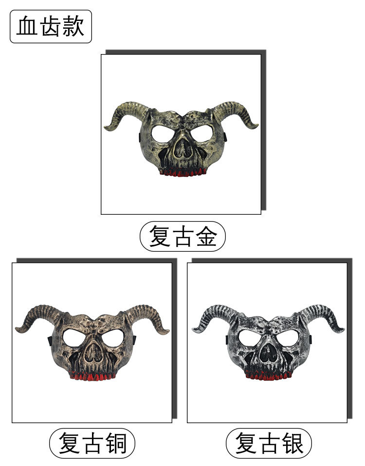 Amazon Halloween Retro color horn esqueleto máscara fiesta de Halloween thriller disfraz de props cool baile de máscaras