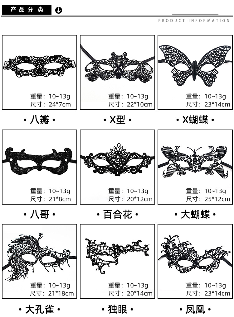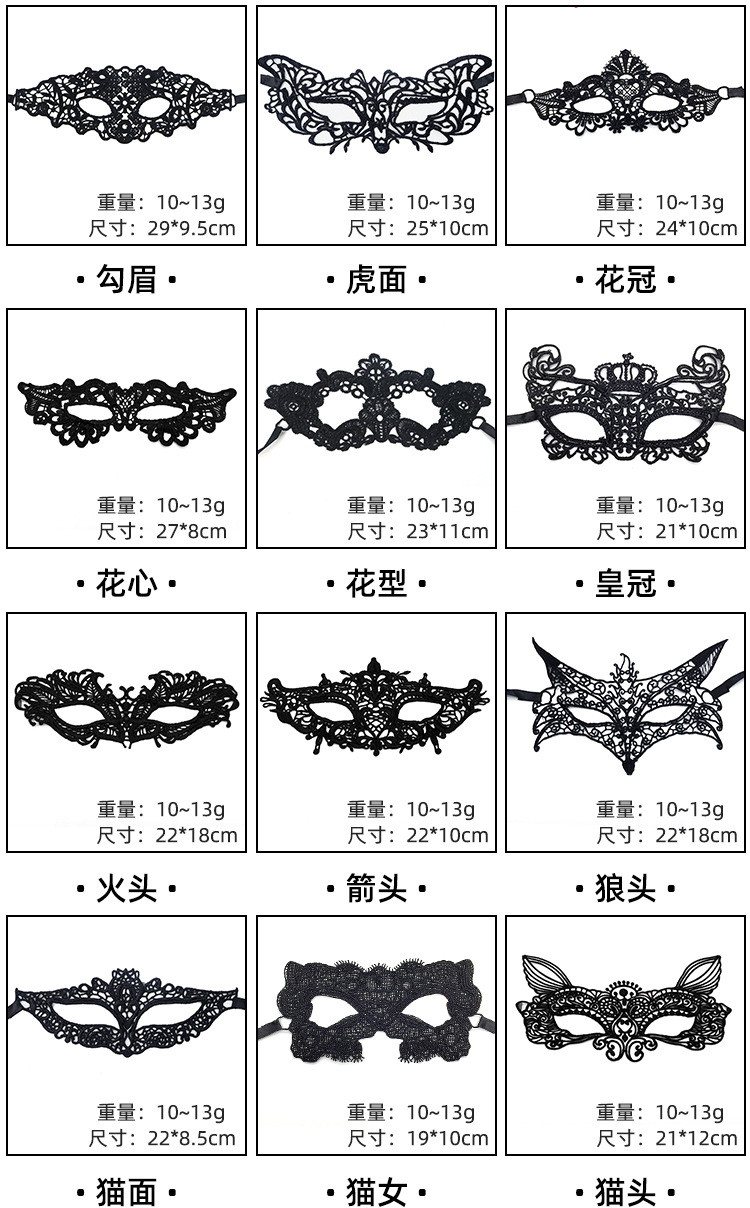 Transfronterizos exclusivos para ojos de encaje negro, fiestas de Halloween, máscaras de mitad de cara, suministros de Navidad