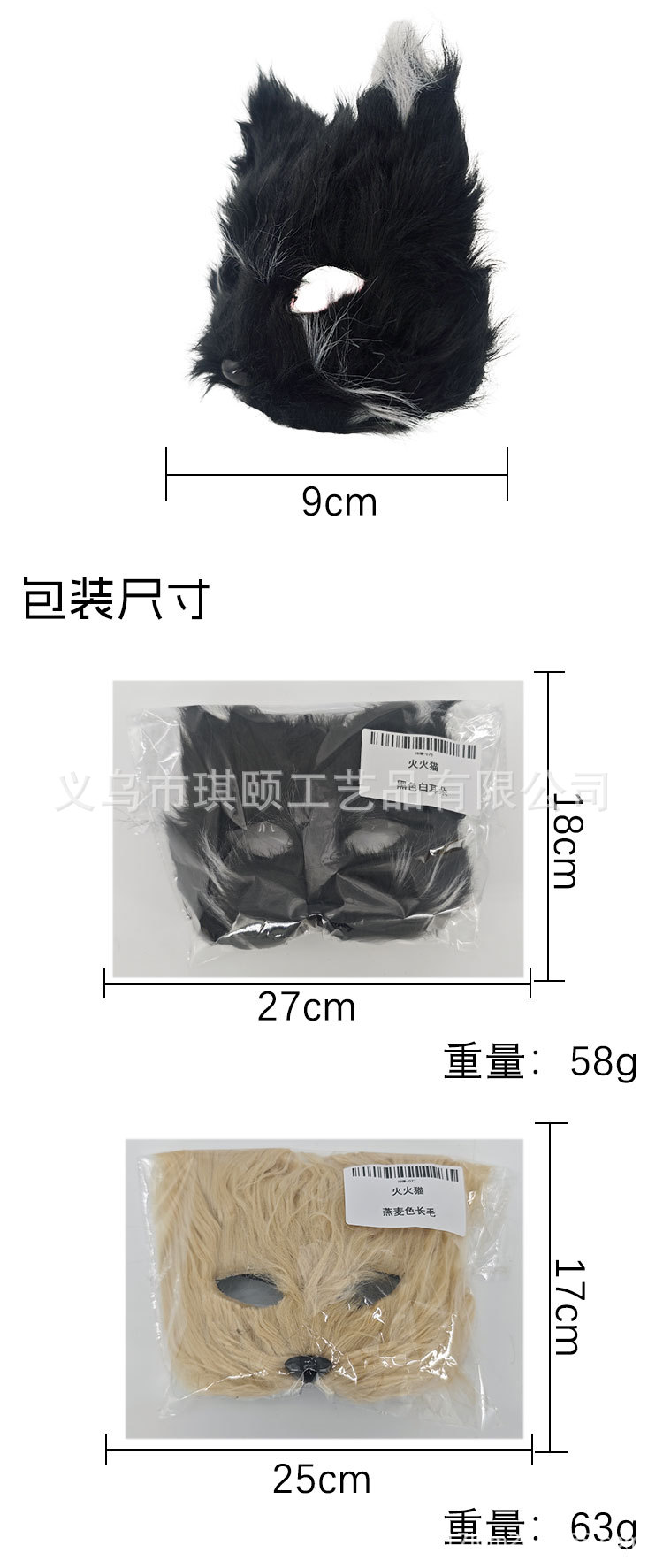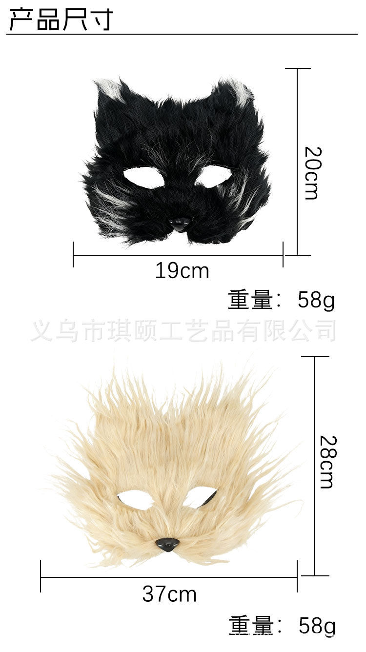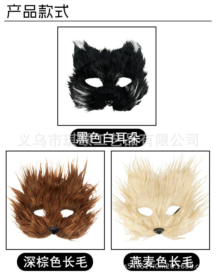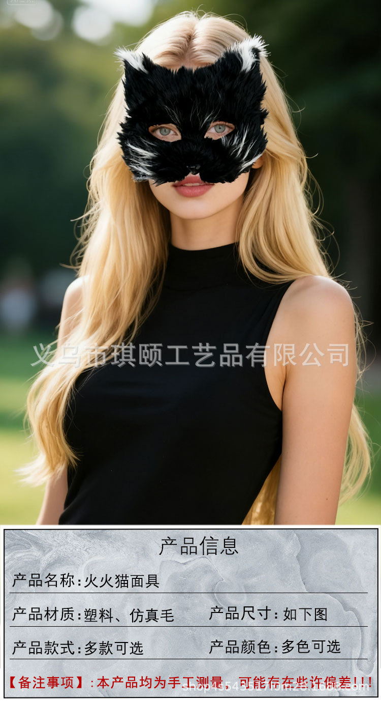 Cross-border nuevo zorro peludo largo cara de gato mitad cara máscara de gato de fuego máscara sexual interesante máscara de cara completa Halloween
