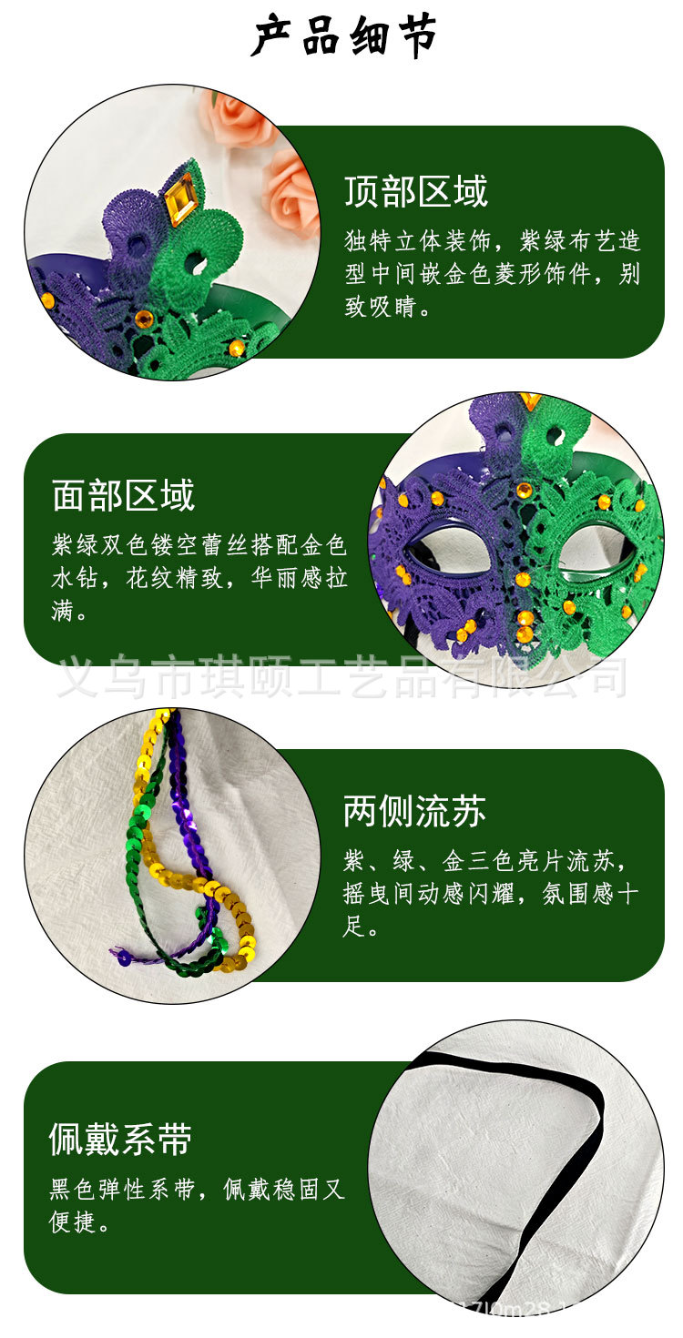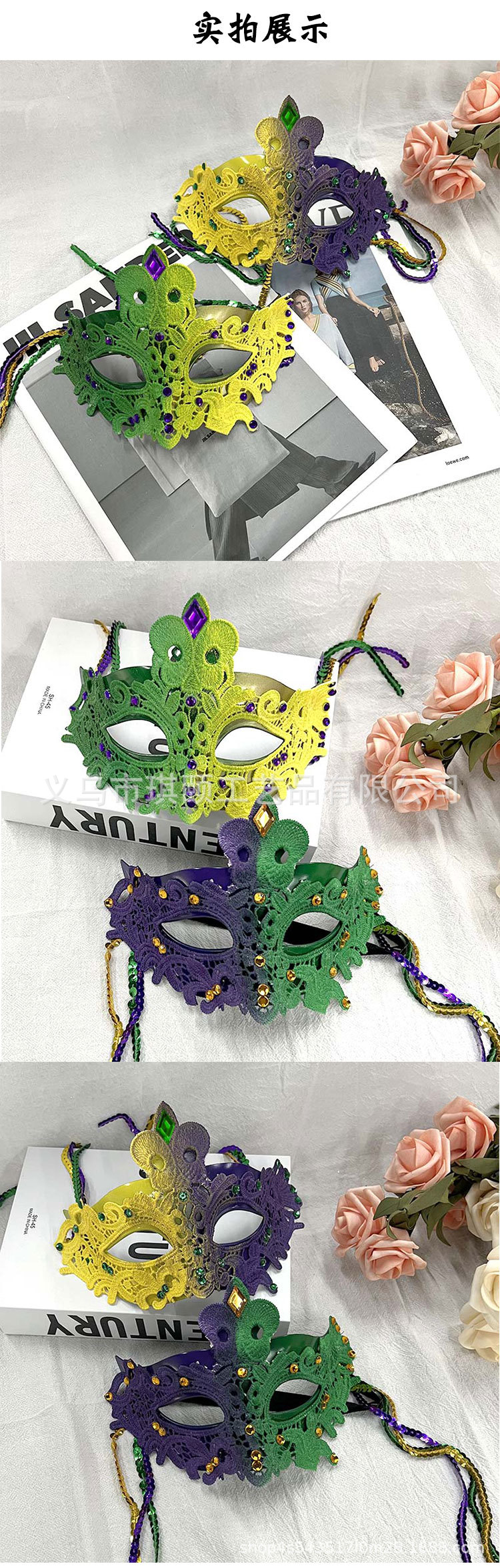 Nueva máscara de diamante de color roxo verde dorado regalos festivales fiesta fiesta máscara de mitad de cara sexy