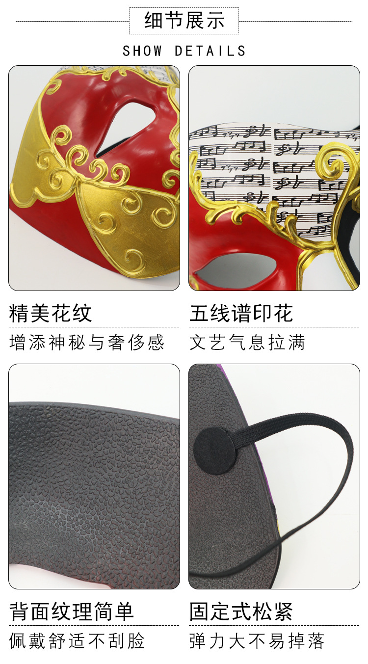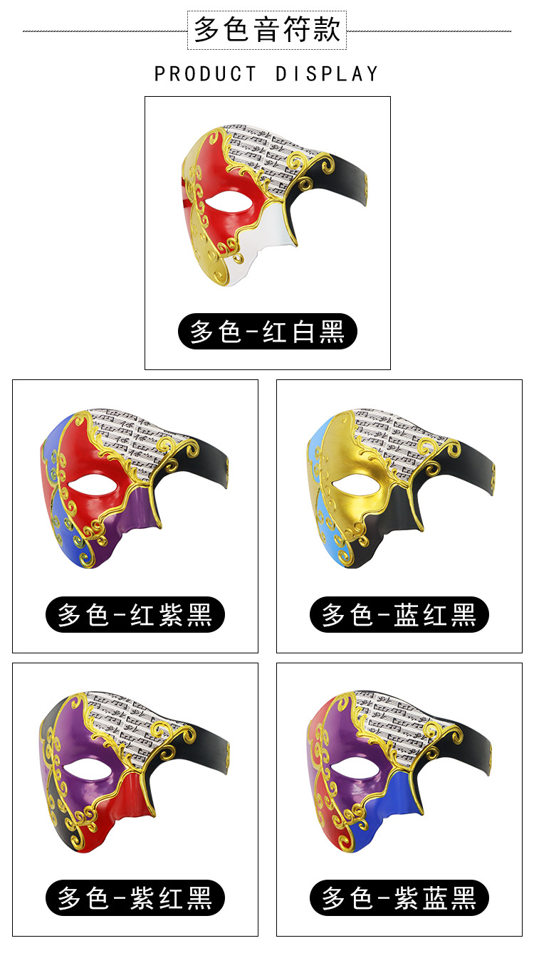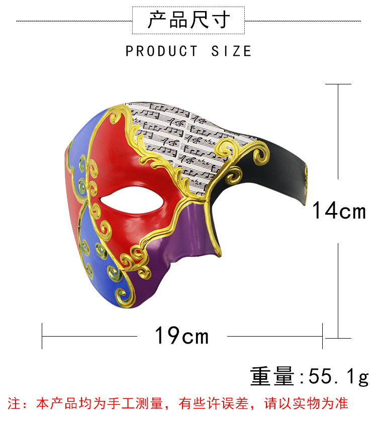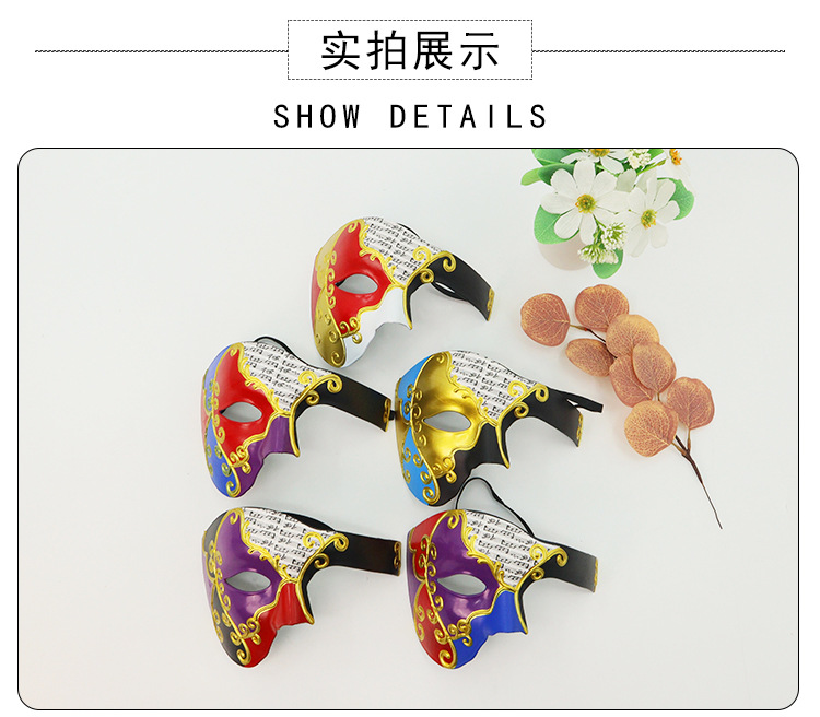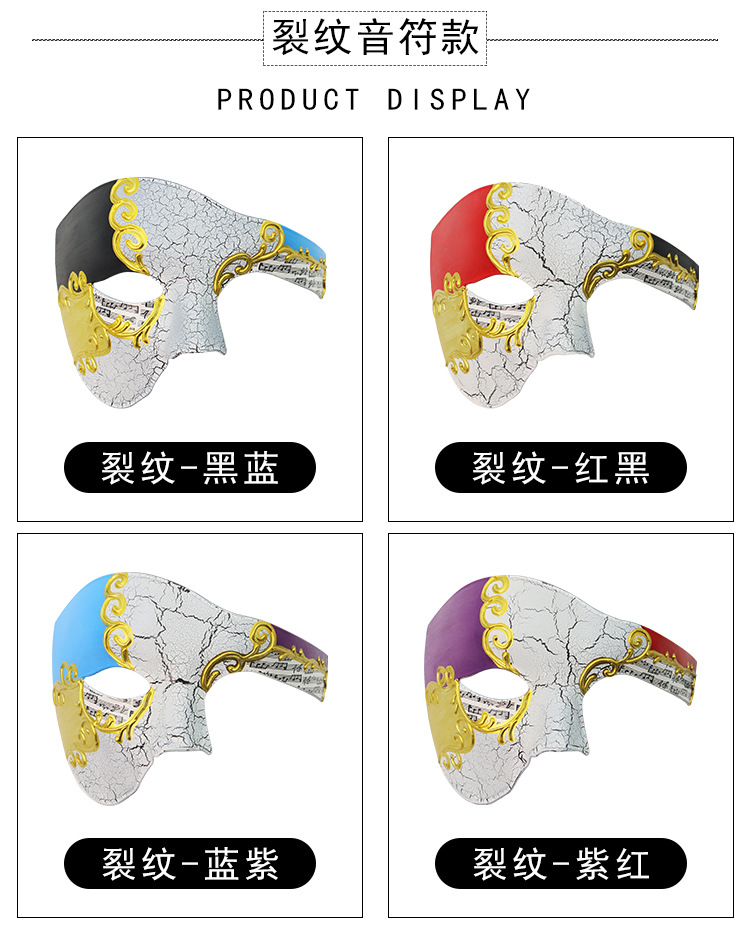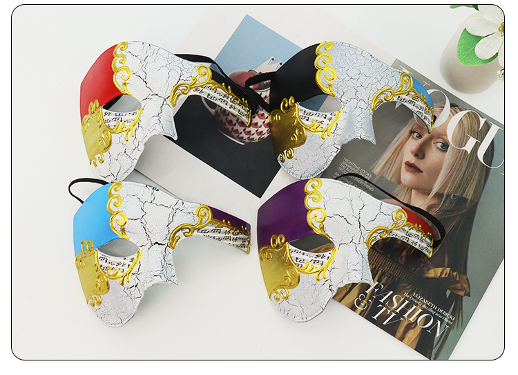 Máscara de media cara de nota de crack veneciana transfronteriza Máscara de fiesta de disfraces vintage para hombre Máscara de Halloween