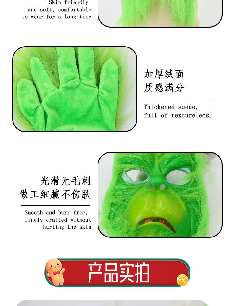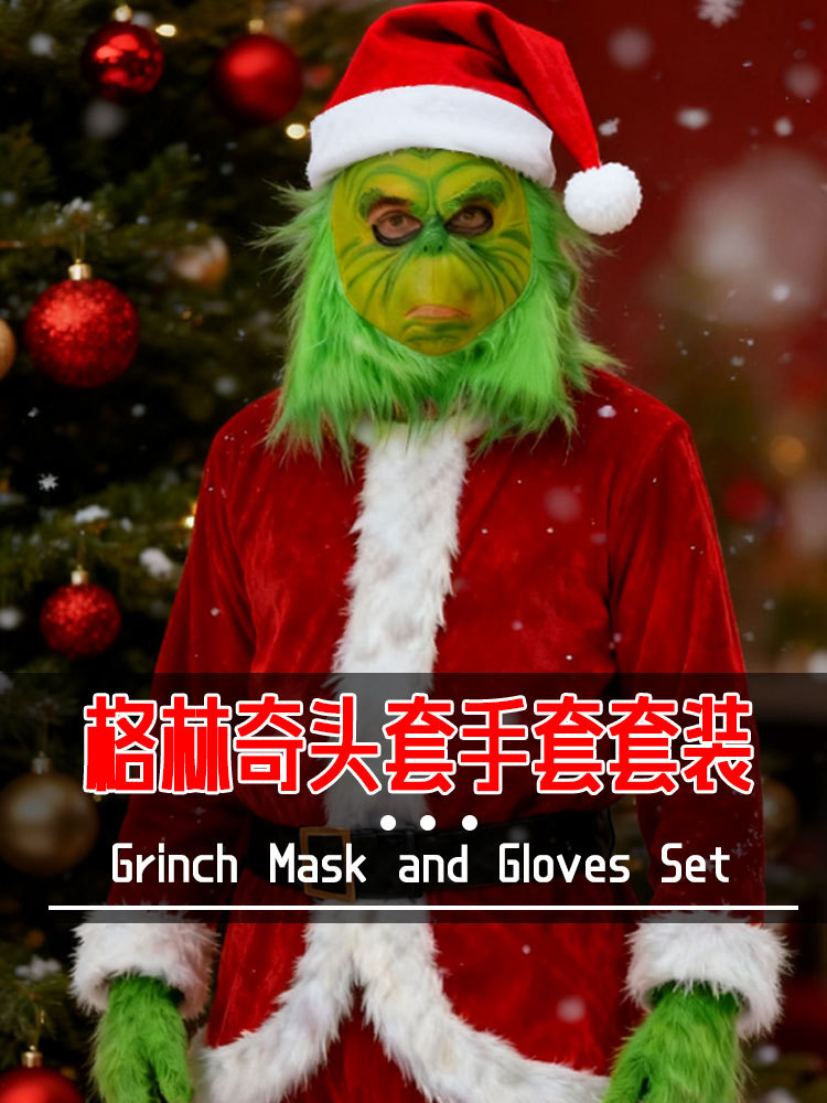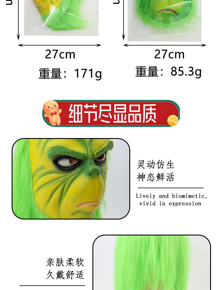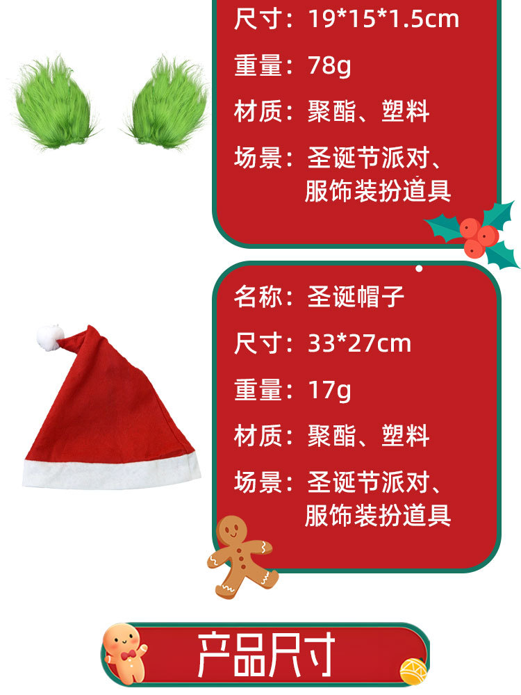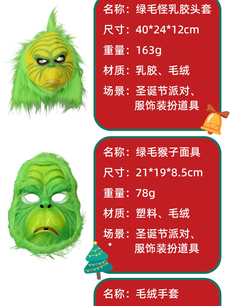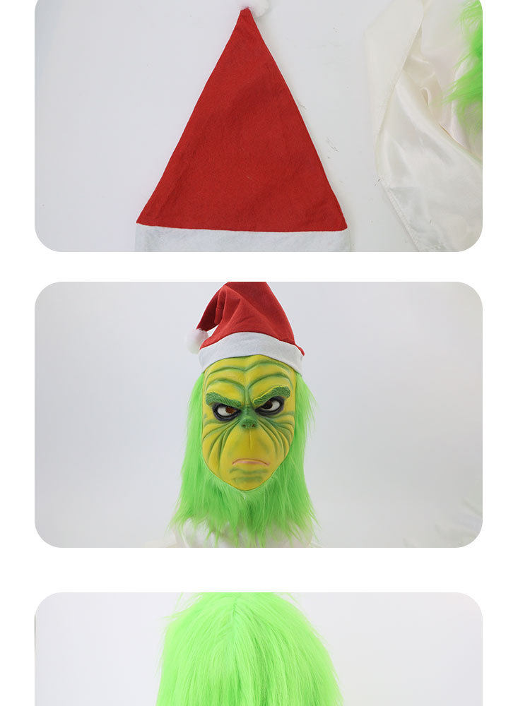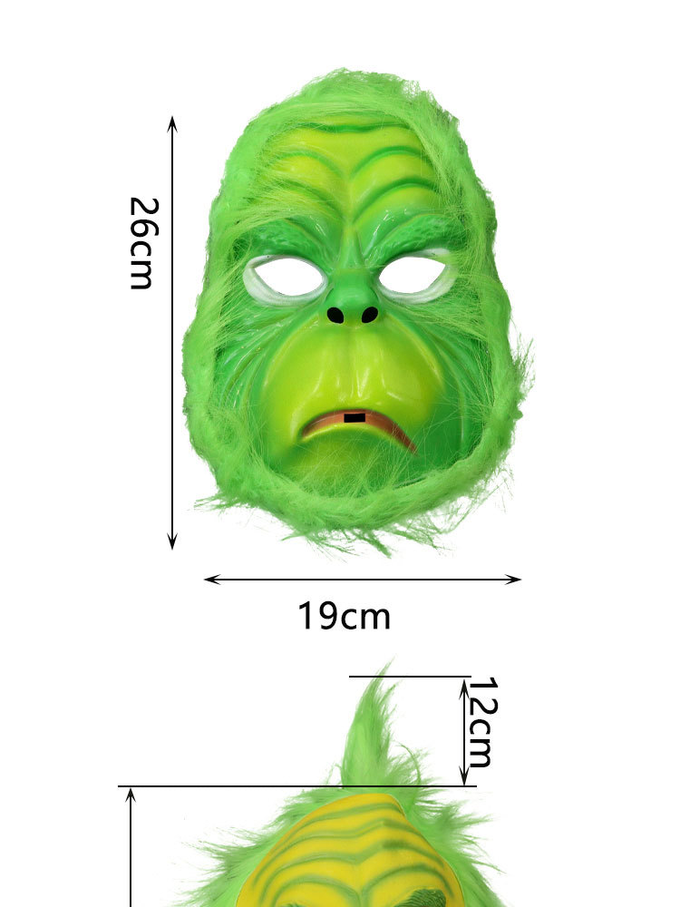 Grinch cara gorda cabello verde toque de cabeza de baile de máscaras transfronterizas en vivo máscaras navideñas divertidas props de fiesta