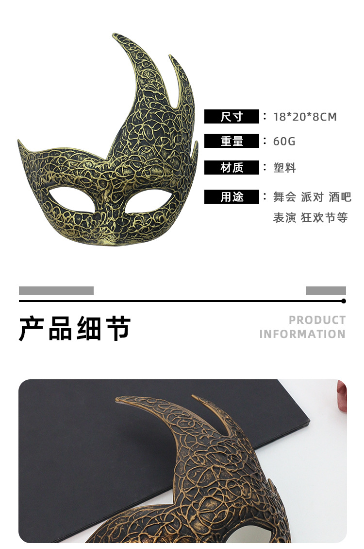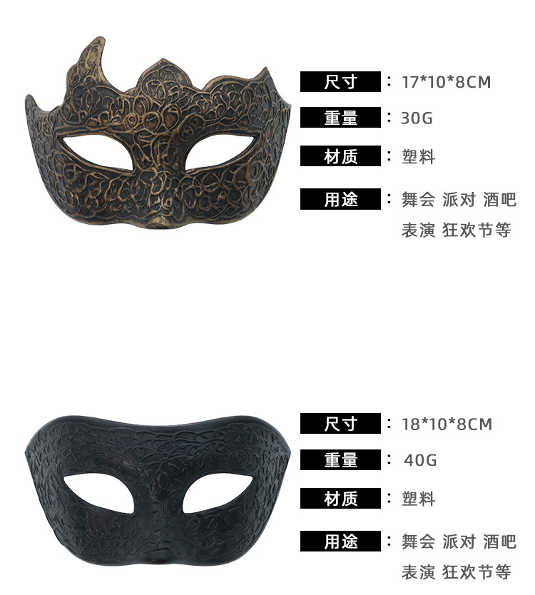 Amazon ventas calientes retro mitad cara máscara de jazz Halloween carnaval máscara decoración de fiesta