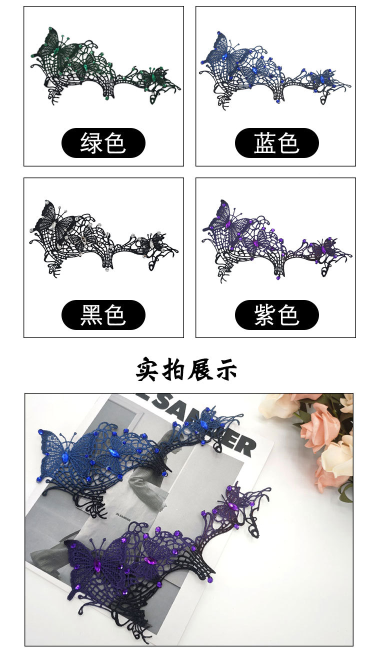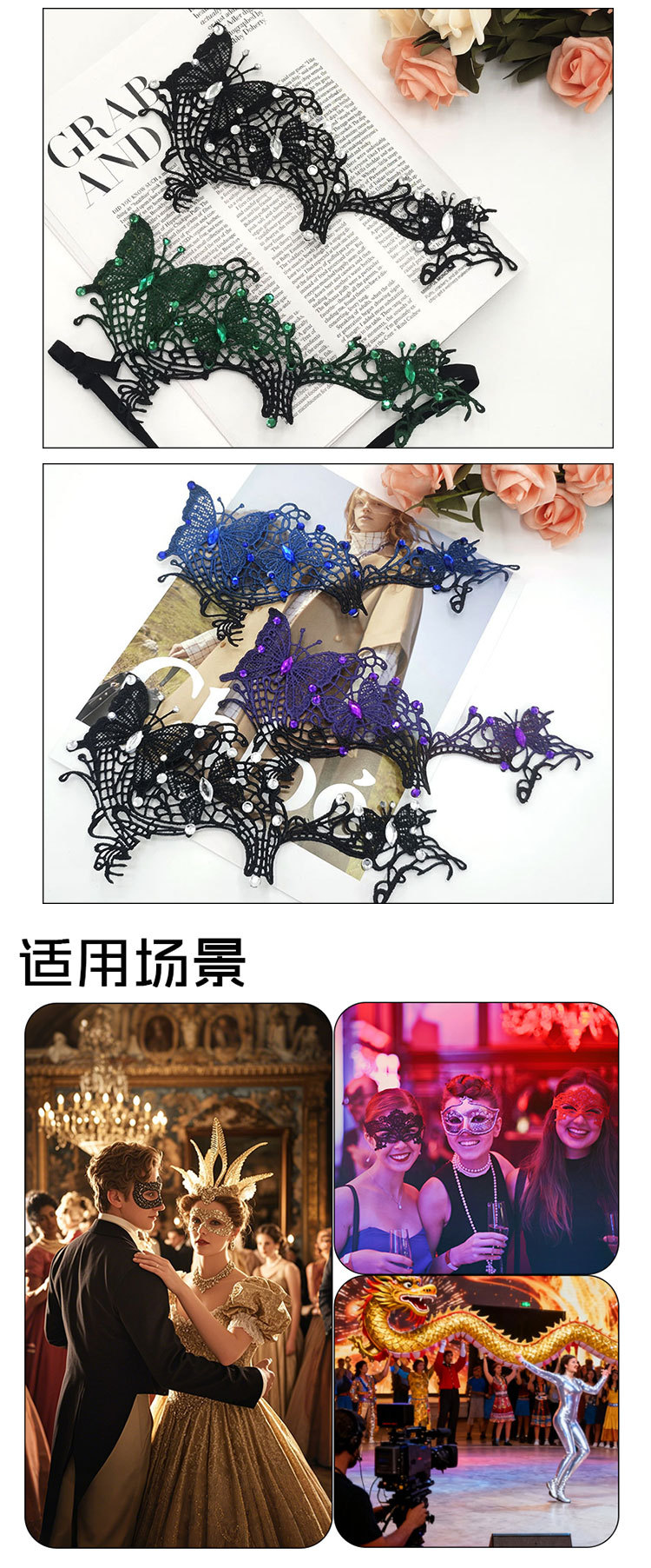 Venecia máscara de mariposa de encaje negro con gafas especiales máscara de carnaval de diamante sexy