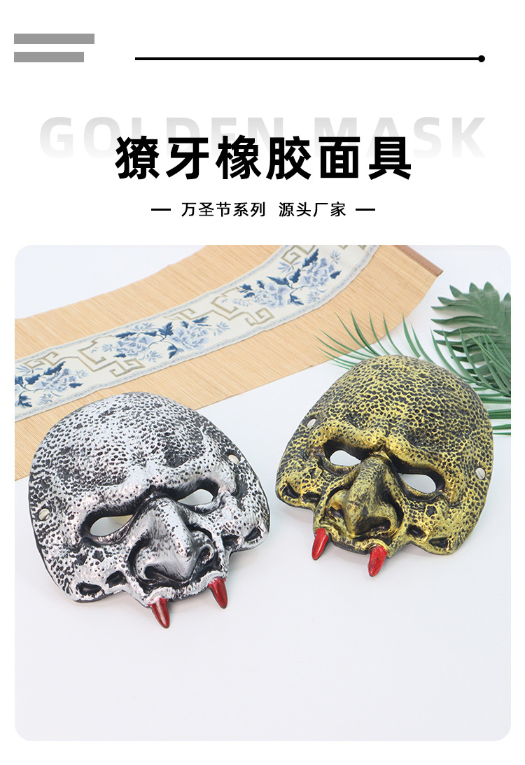 Amazon transfronterizo PU material verde Goblin Halloween carnaval máscara de disfraz de fiesta con dientes accesorios