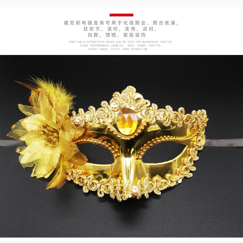 Amazon venta caliente lirio galvanizado pintura lateral flor veneciana princesa máscara de baile punta máscara de mitad de cara
