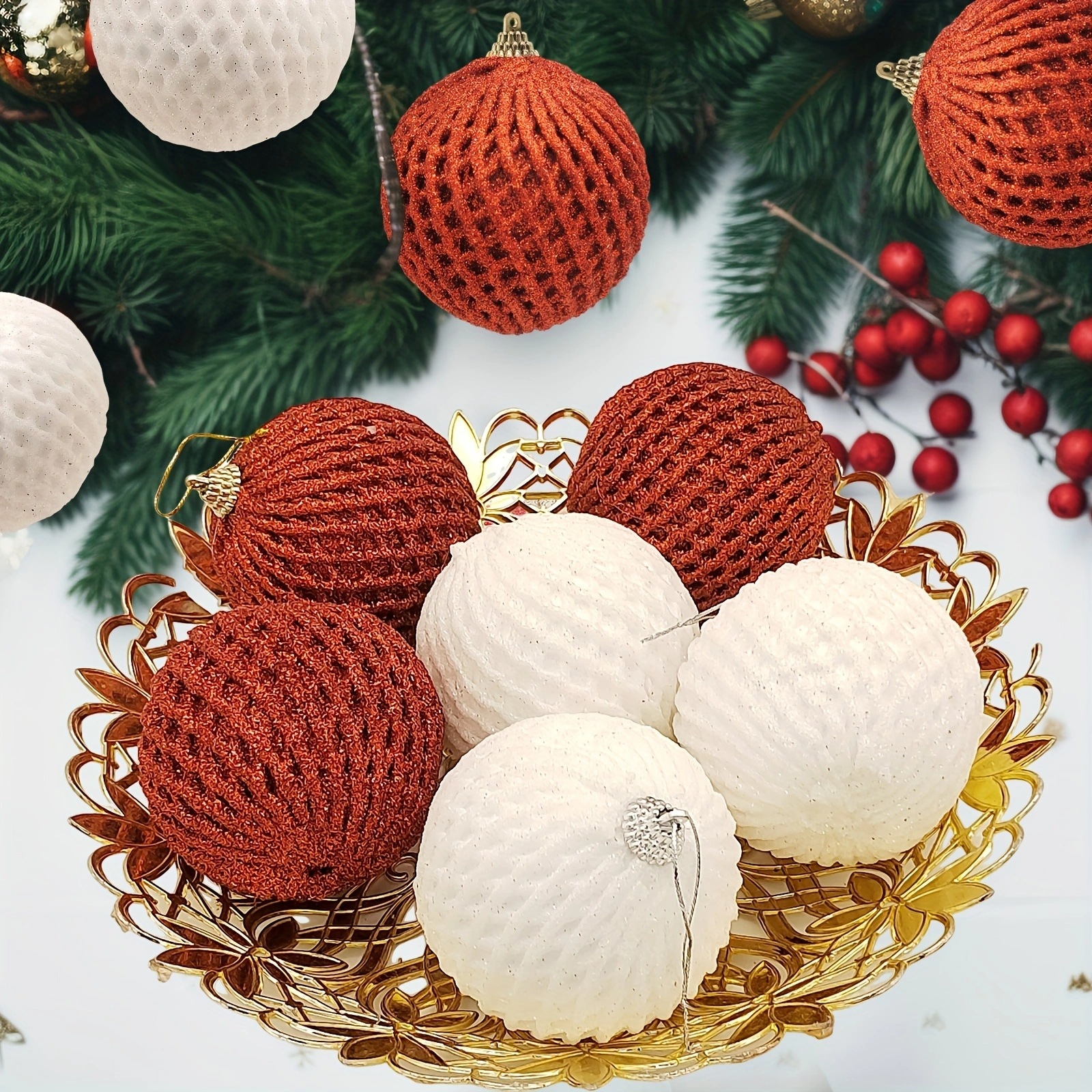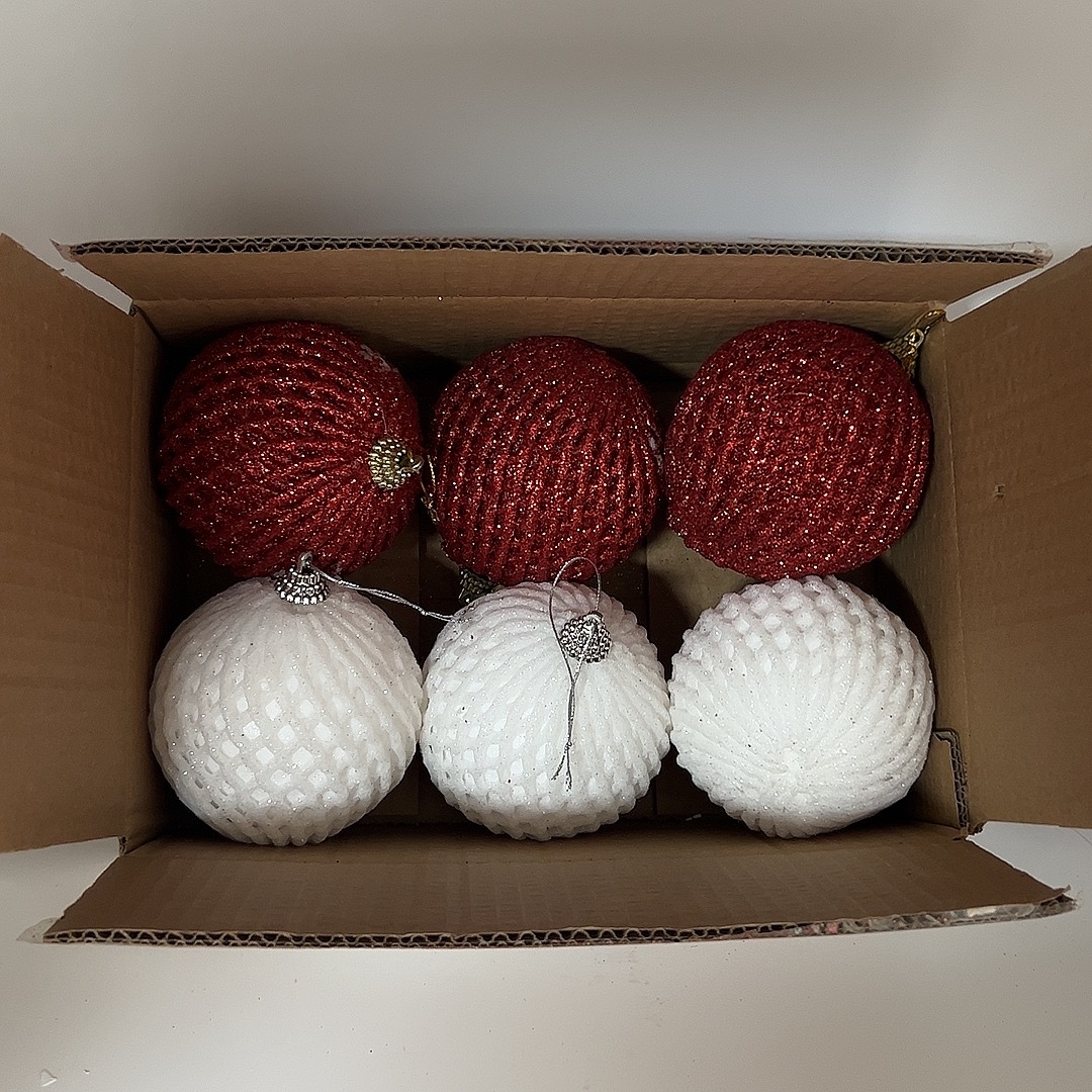 Nuevo conjunto de bola de espuma de 8cm 6 piezas red y blanco espuma polvo brillante decoración de bola de Navidad colgante de árbol de Navidad