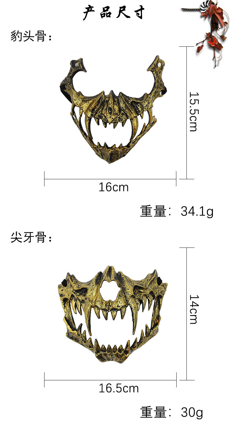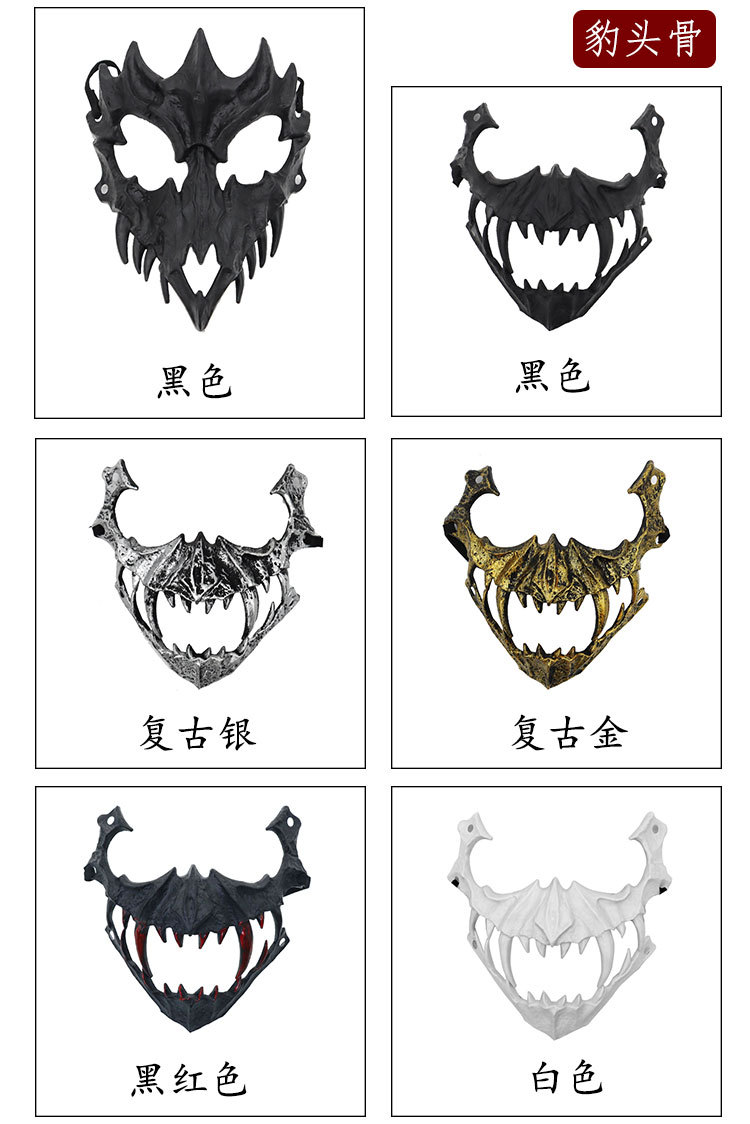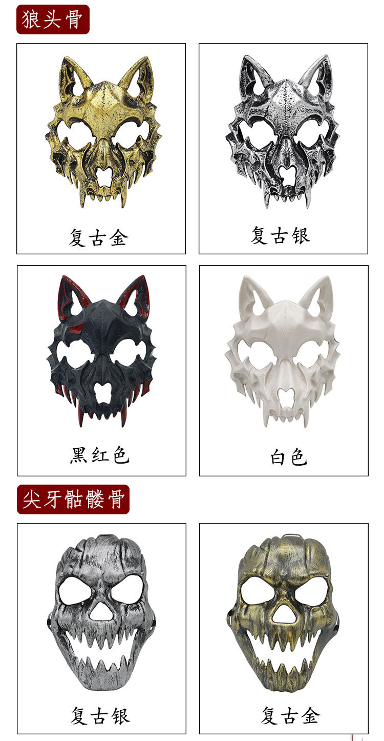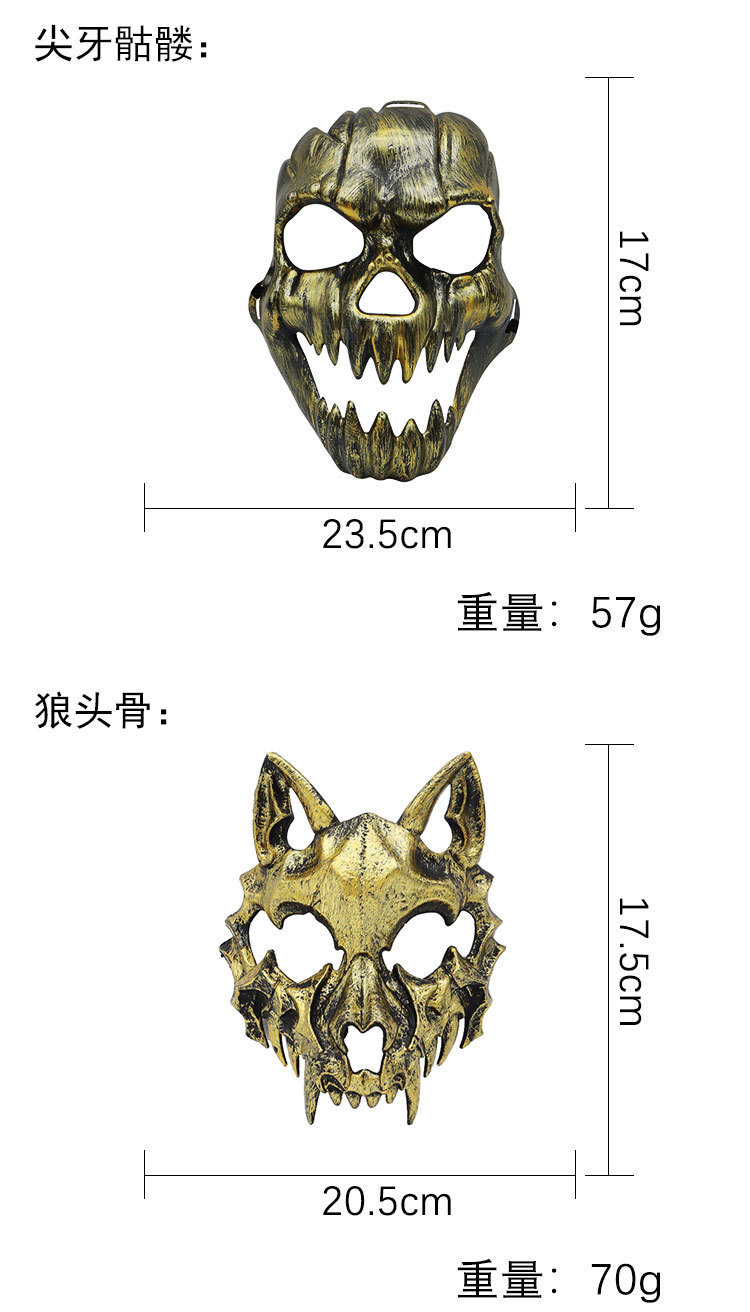fiesta máscara de esqueleto dientes largos demonio esqueleto mitad cara máscara de lobo detrás máscara gigante disfraz de Halloween